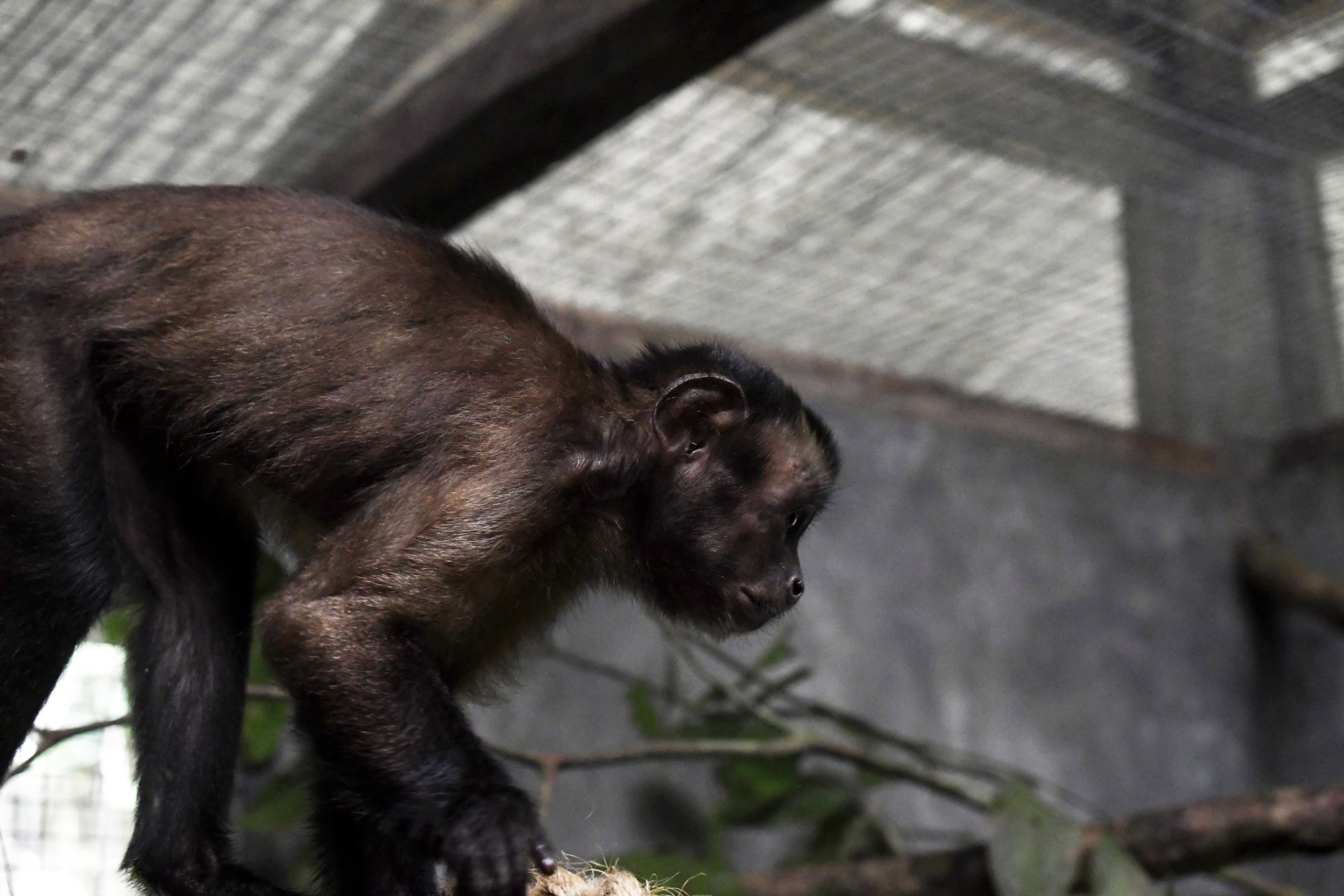 Rayko and Biko, two large headed capuchin monkeys. Rayko being the smallest but both active and playfull but still a bit too skinny.