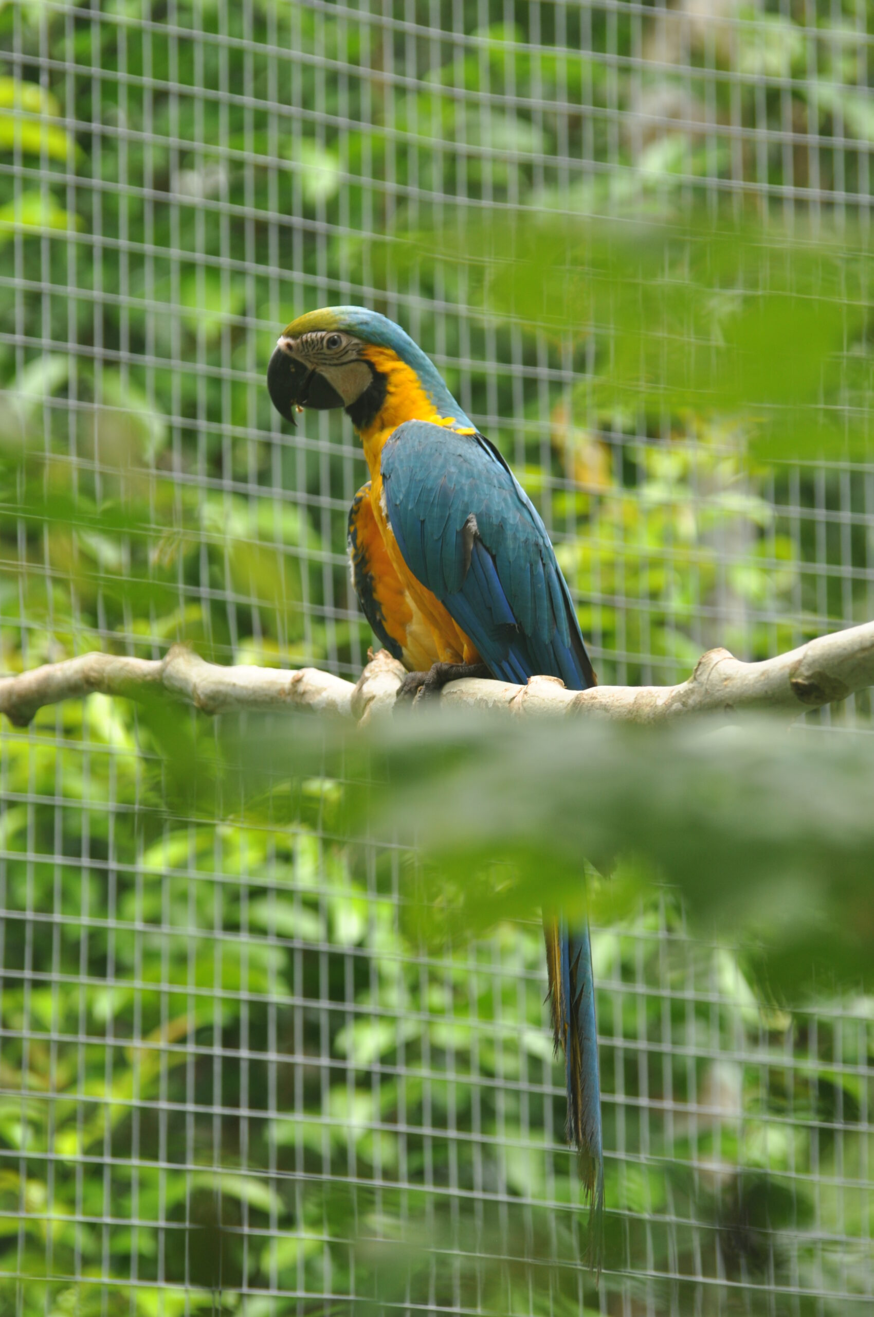 With the front cage of Elmo now free, it was a great opportunity to get everyone’s favourite blue and yellow macaw out of the clinic and back out into the open. Rafiki made the move with very little hassle and appears to be adjusting well. Plenty of interest was shown both ways between the seasoned veteran and the younger birds and it looks like they will all make very good neighbours. Rafiki won’t be able to join them in the big enclosures as there is too big of a risk of falling from a height, as unfortunately he can’t use his wings at all.