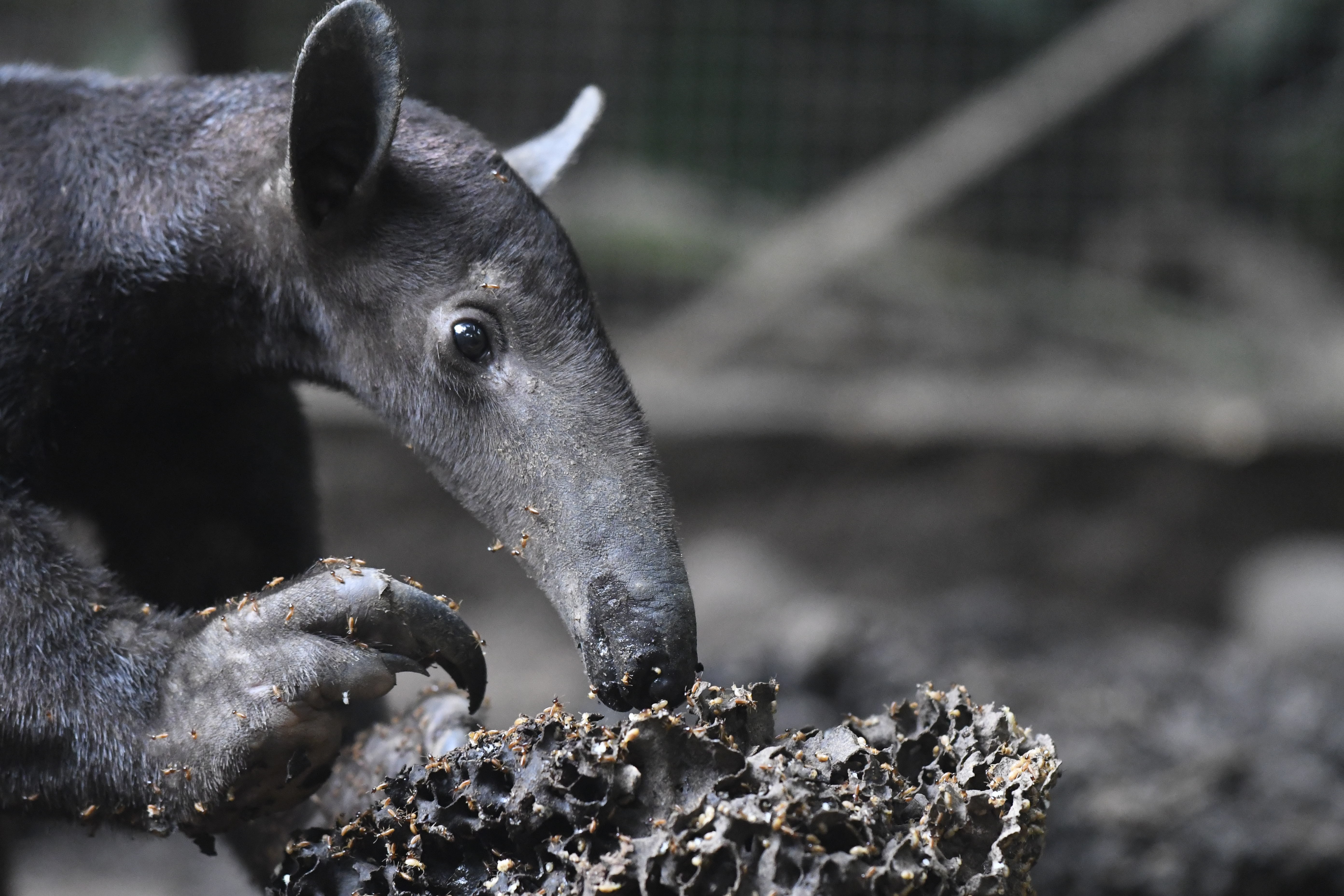 Tandoori, a female tamandua or lesser anteater, showed up in a garden in the suburbs of Pucallpa and the Ministry was called to pick her up. She was taken care of for some time by a veterinarian in Pucallpa and it seems she had been used to people and had likely been in captivity before that. She was placed in the Tiliku cage, as Kiko and Kila (our male and female kinkajous) had not been using it that frequently, and are now fed on an outside table. She is receiving fresh termites daily as well as a power mix made by Olivia twice a day. Her strength and enthusiasm is coming ahead in leaps and bounds which is hugely positive as the aim is to release her as soon as she is strong enough.