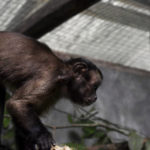 Mashi and Almira, male and female woolly monkeys, very young. Almira is playful and estimated about 8-9 months old and is already happily playing with the capuchins. Mashi is about 6 months and very skinny. He sleeps separately at night in a small cage, while spending some time during the day with the capuchins and Almira, as well as spending some time with a volunteer to stimulate him to eat and teach him what he should eat.