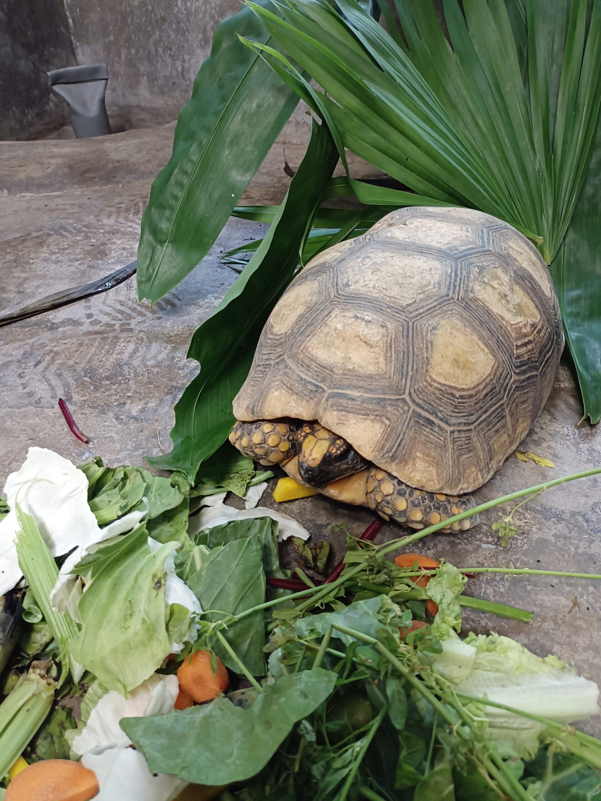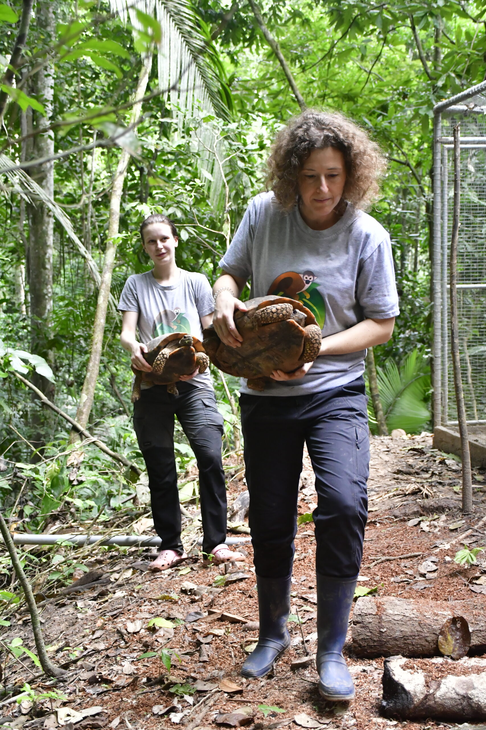After a lot of intense vegetable cutting, many faeces examinations, deparasitation treatments and more faeces checks, the tortoises in the quarantine were ready for release. To avoid them being easily spotted we released them bit by bit. The director of the GERFFS (Ministry of Flora and Fauna Pucallpa), came to officially launch the release process (see their video: https://fb.watch/lsfTtYBDsp/?mibextid=2Rb1fB).