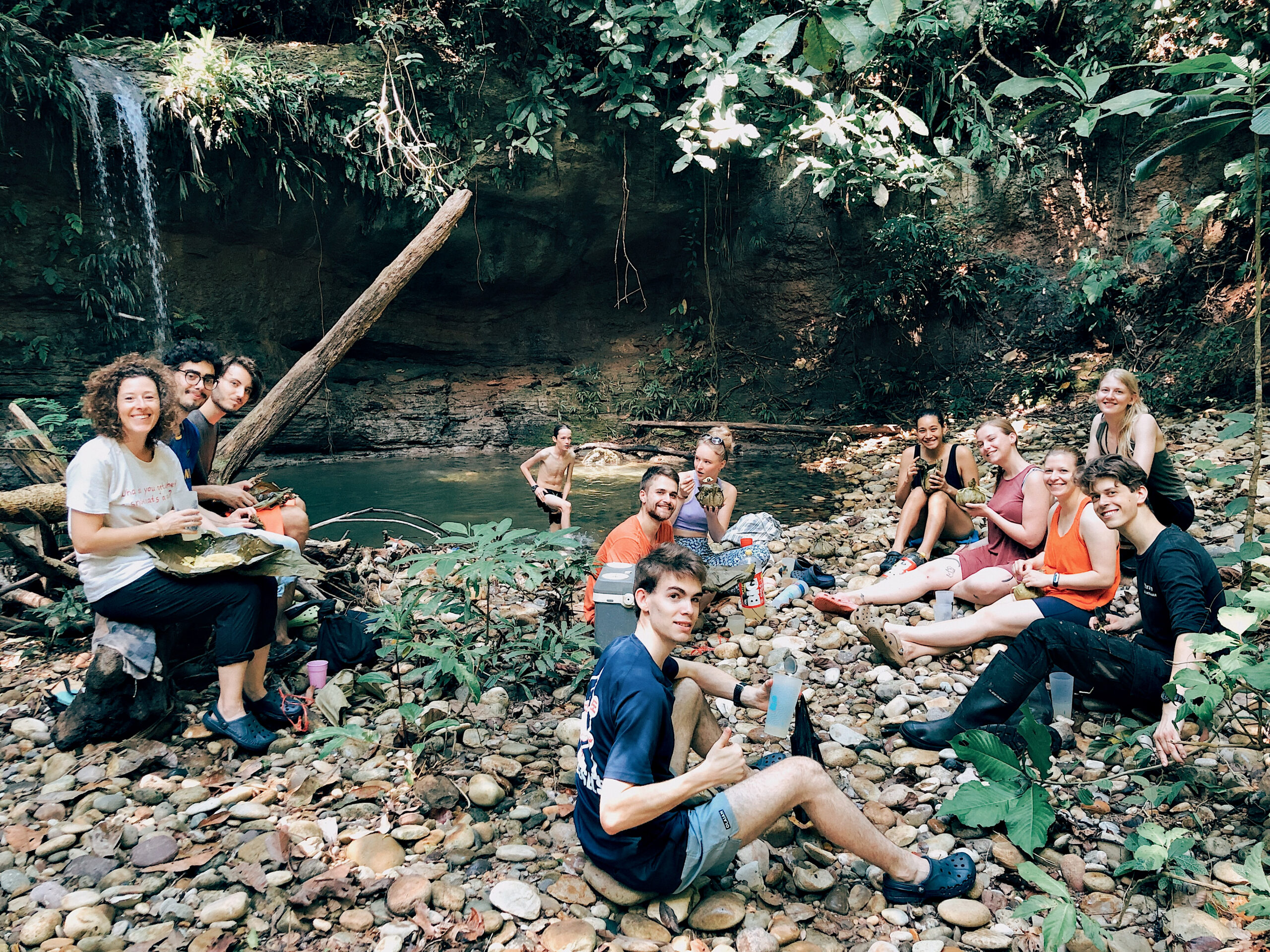 Luckily by the 24th of June, the weather got sunny and warm again, so the local holiday San Juan could be celebrated at the waterfall. As tradition prescribes, we ate ´Juanes´ for lunch; rice wrapped in banana leaves to represent the head of Saint San Juan. We also enjoyed a nice swim and some relaxing time in the sun.