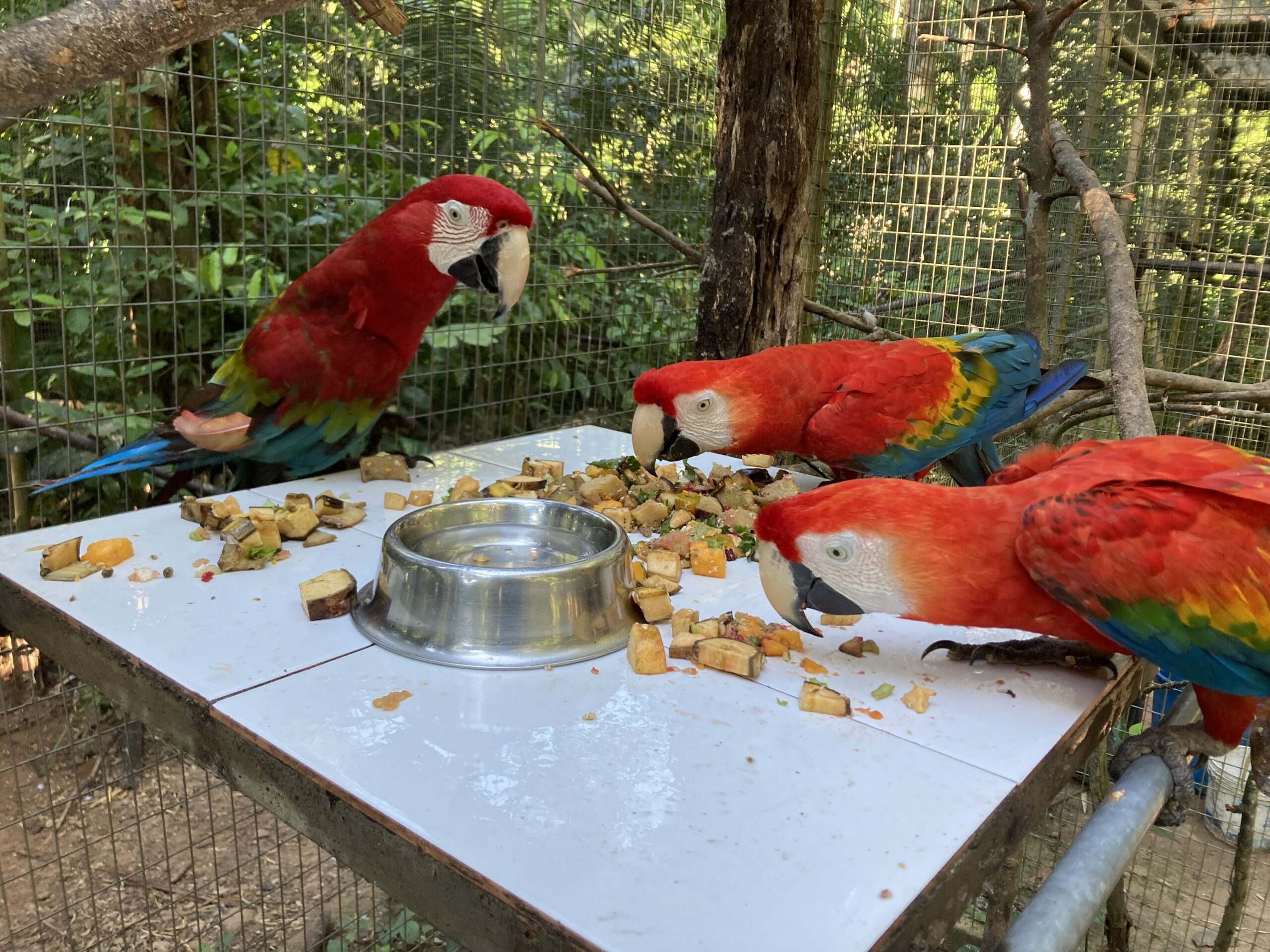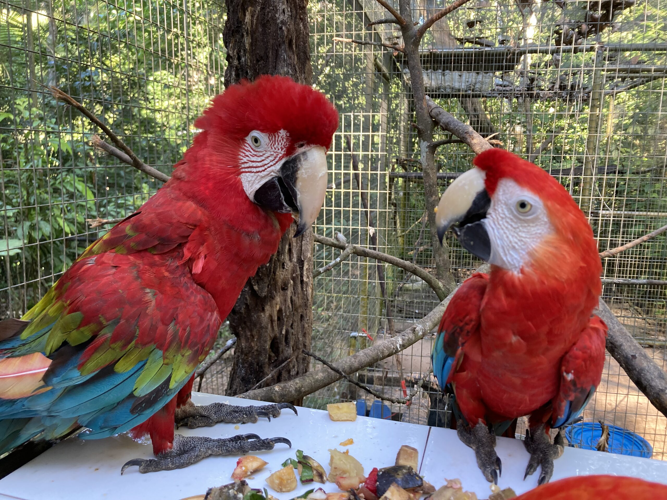 After surviving a fer-de-lance bite the scarlet macaw, Wanda, was moved to the new Elmo aviary addition. Rufo (red and green macaw) who has been lonely for so long sure enjoyed this as Wanda sure triggered something! They’re grooming each other and sleeping together (not like that…). Finally, some happiness for Rufo and Wanda. And, who cares about difference in species when love is in the air?