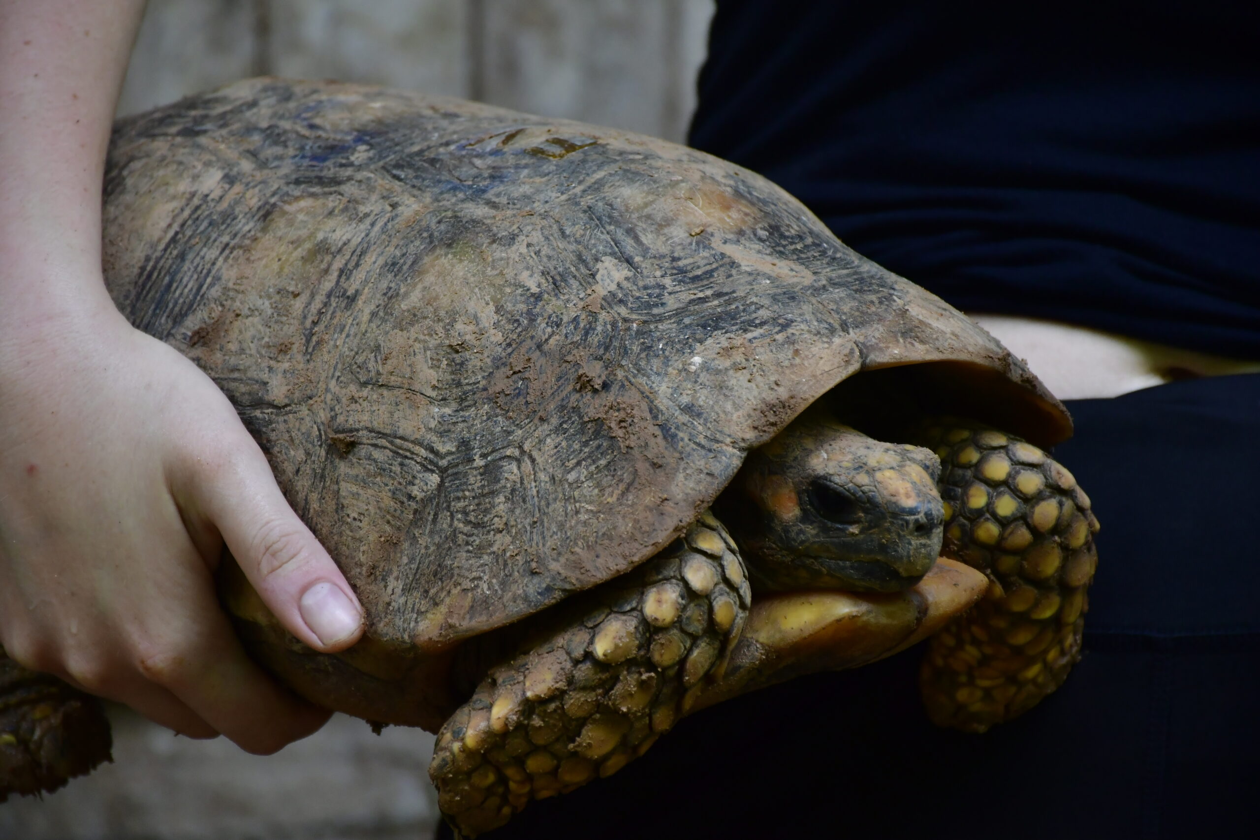 Other newcomers are an anaconda, a yellow-footed tortoise, and a young squirrel monkey. The anaconda was very recently taken from the wild. So, we aren’t surprised he refuses the food given to him – a quick release is already in the plans. The tortoise does not look too good and we hope she will respond well to our care. The young female squirrel monkey, Mina, was kept for some time in a small cage, resulting in very sticky, dirty fur, and the top of her tail missing. Cold and dirty she was happy to climb directly to the safety of Olivia’s arms. After a gentle wash, she is already looking better, and with some good nutrition and care, she will look like a normal squirrel monkey soon enough again. For now, she is under Olivia’s supervision at the family house.