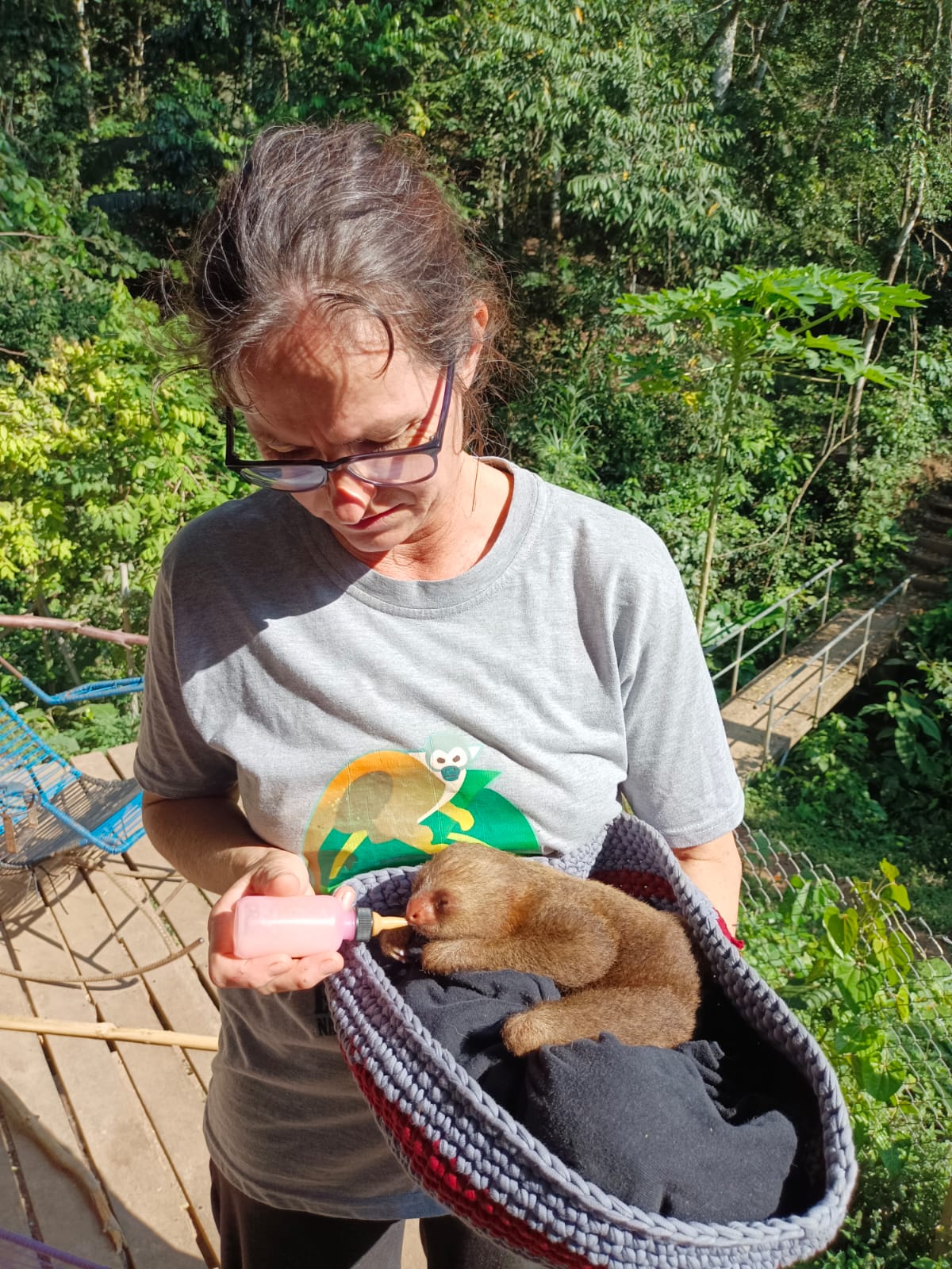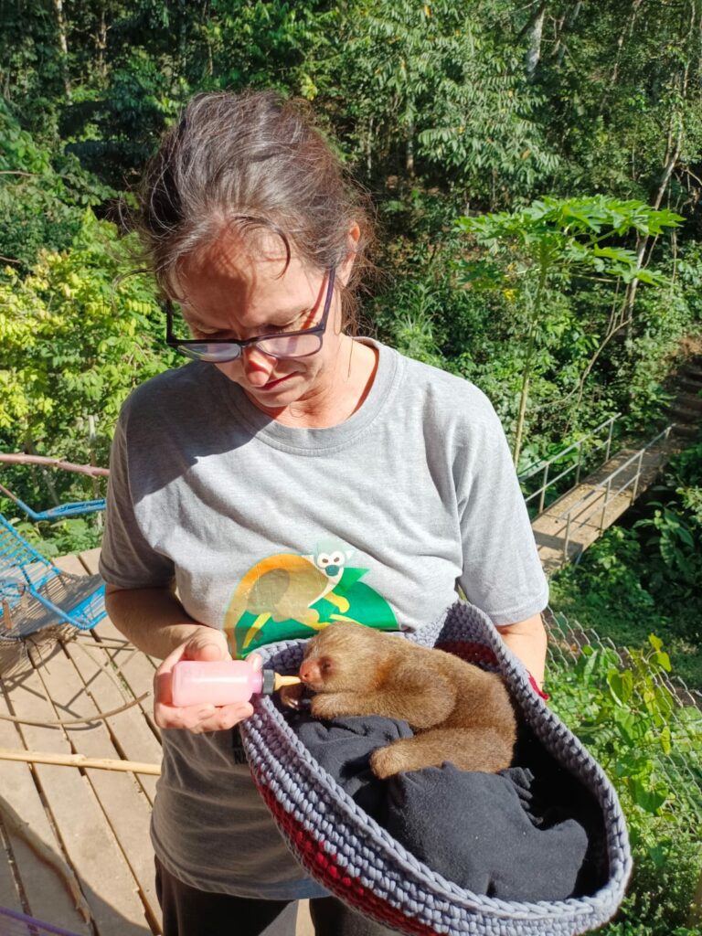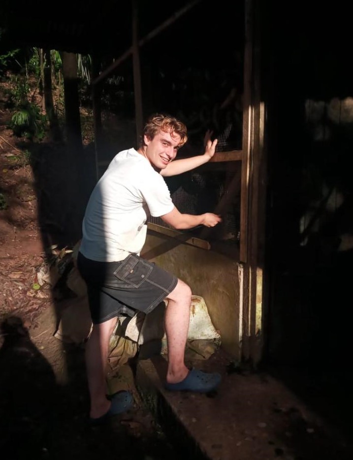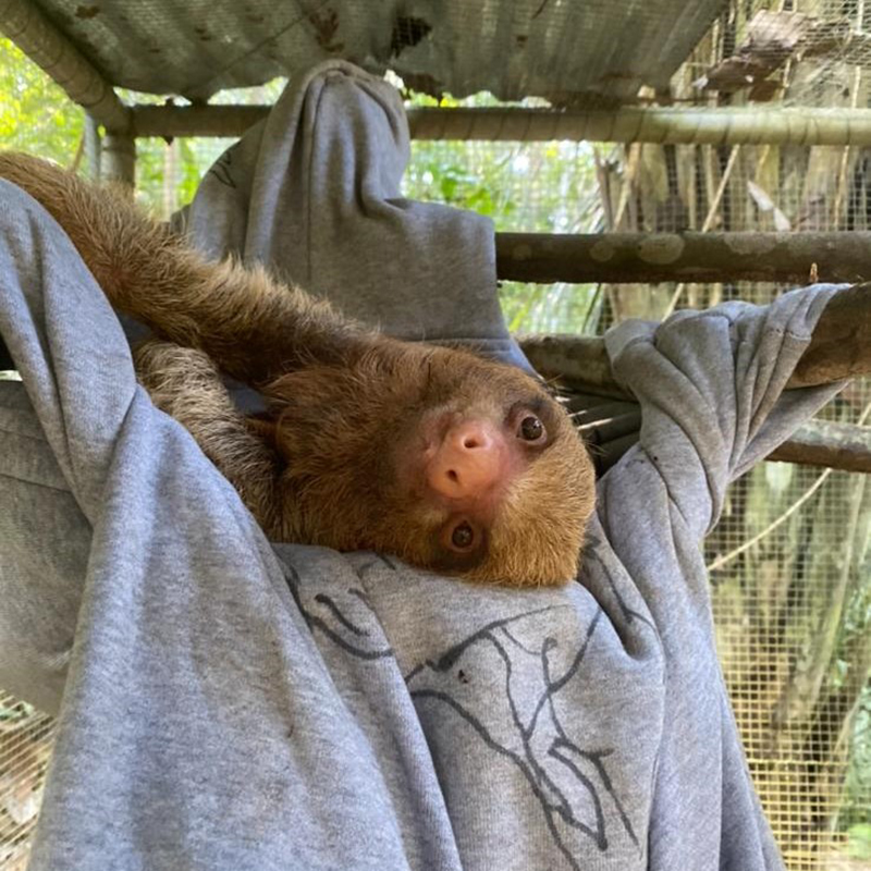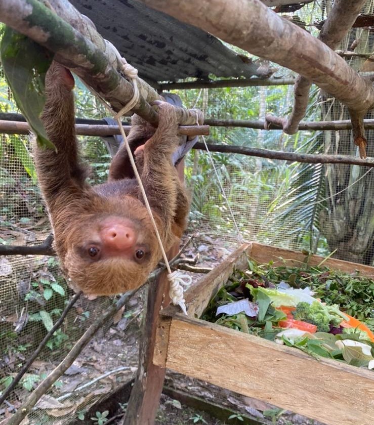 After a long stint in the family house, Kelso (male juvenile two-toed sloth) has moved into a stunning outside enclosure, built by Douwe and Tom.Now that he’s outside, he’s officially part of the feeding tour. Leaves are a vital part of a sloth’s diet, so the volunteers take Kelso on daily leaf walks in preparation for his release.