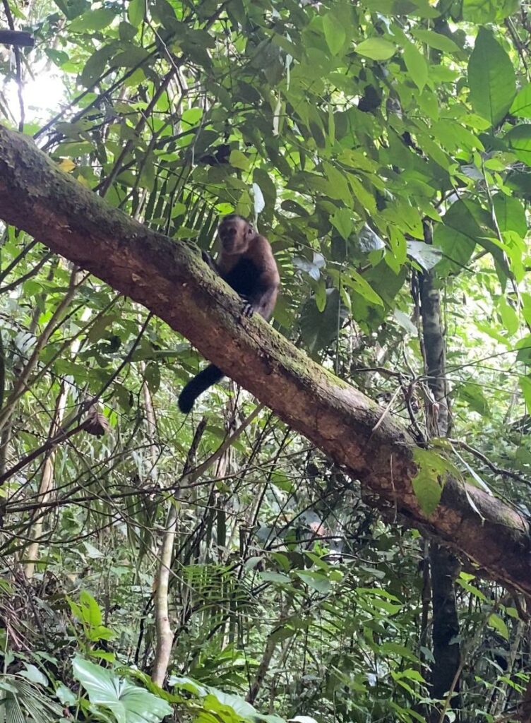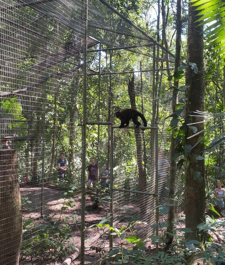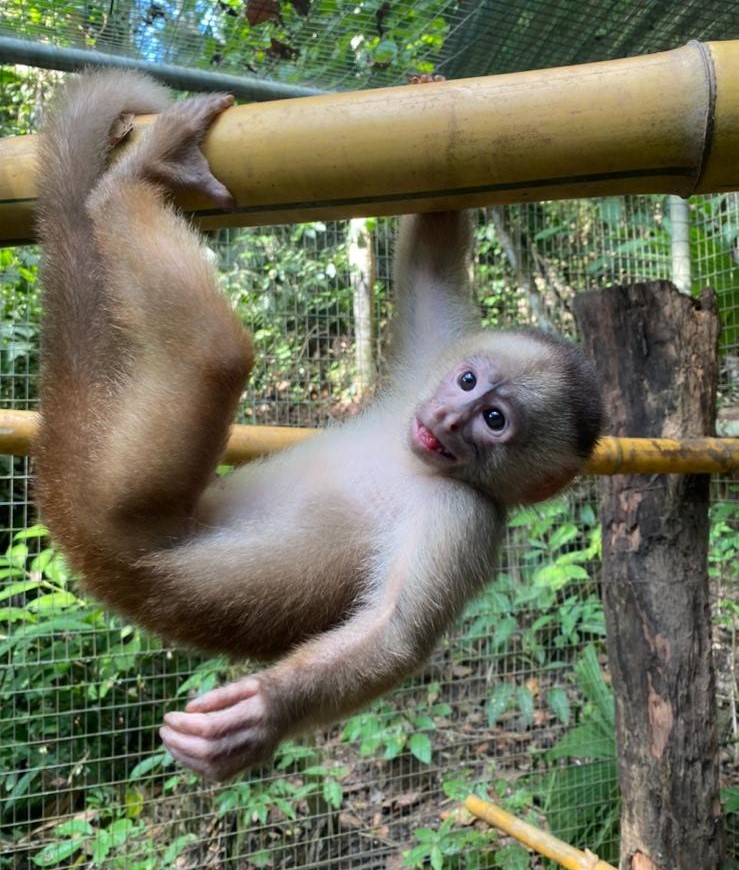 Valentino, Choco and Fasso (male large-headed capuchins) were also released from their enclosure. The remaining residents are the very human-focused Yanamayo and Selda (male and female large-headed capuchin). Before coming to Esperanza Verde they were both kept as pets for a long time. This resulted in an irreversible behaviour posing a threat to both humans and them-selves. Valentino, Choco and Fasso (male large-headed capuchins) have all been spotted, on several occasions exploring and foraging in the surroundings, and so far, they did not seem to have any interest in getting close to us.