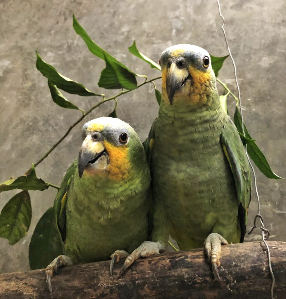 - Tingo and Minga, 2 talkative and curious festive amazon parrots.