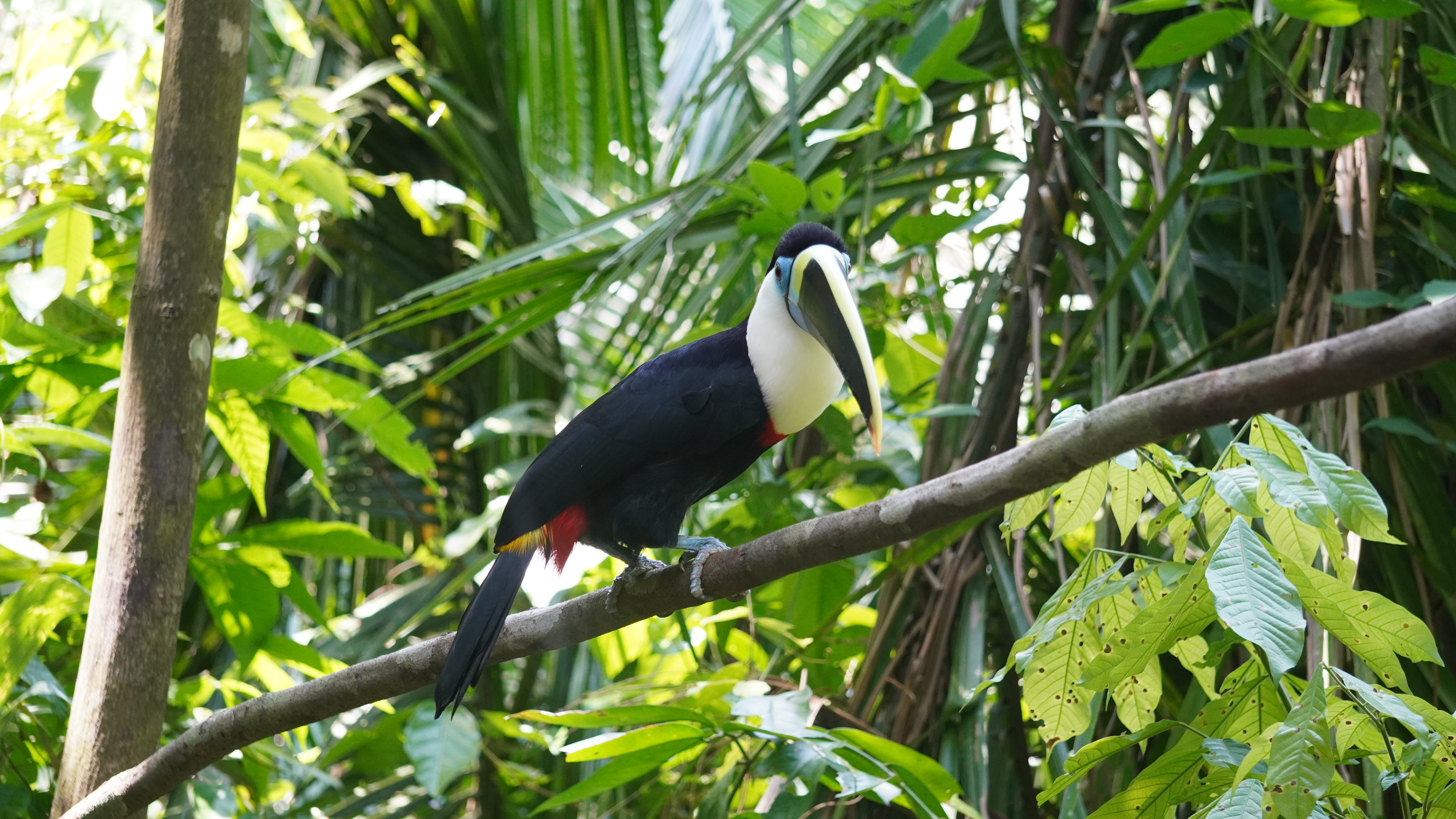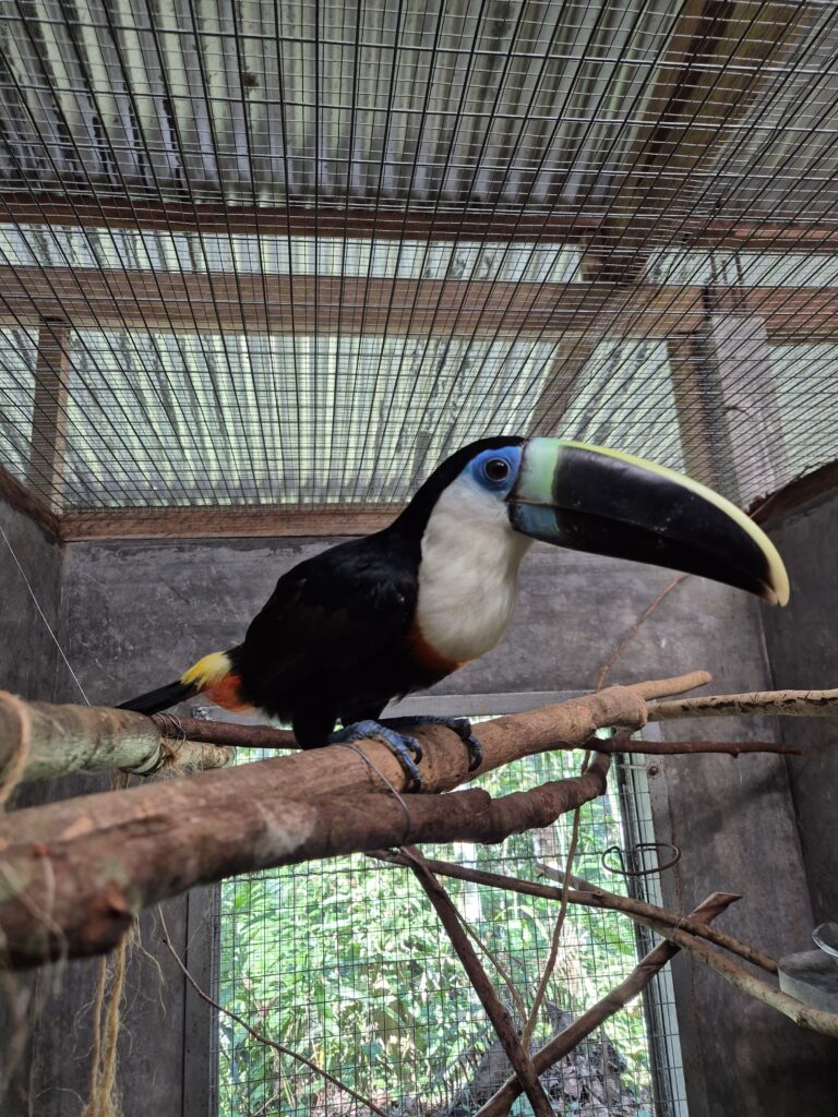 White-throated toucan Tocay now goes out every day! After starting his release last year, it became clear he needed more flight training. Previously kept as a pet, his feathers were cut, making flight impossible. Here, after almost two years, his feathers are complete again, but after years of no flying, his muscles needed strengthening. Thanks to daily flight training with volunteers, Tocay is now strong and free, calling loudly from the trees. Although still imprinted on humans, sometimes flying head-on at certain people (not the nicest experience!), we hope he will gradually connect with the wild toucans that have been spotted now more near the centre. Rehabilitation and release remain complex and lengthy, but Tocay’s progress is inspiring.