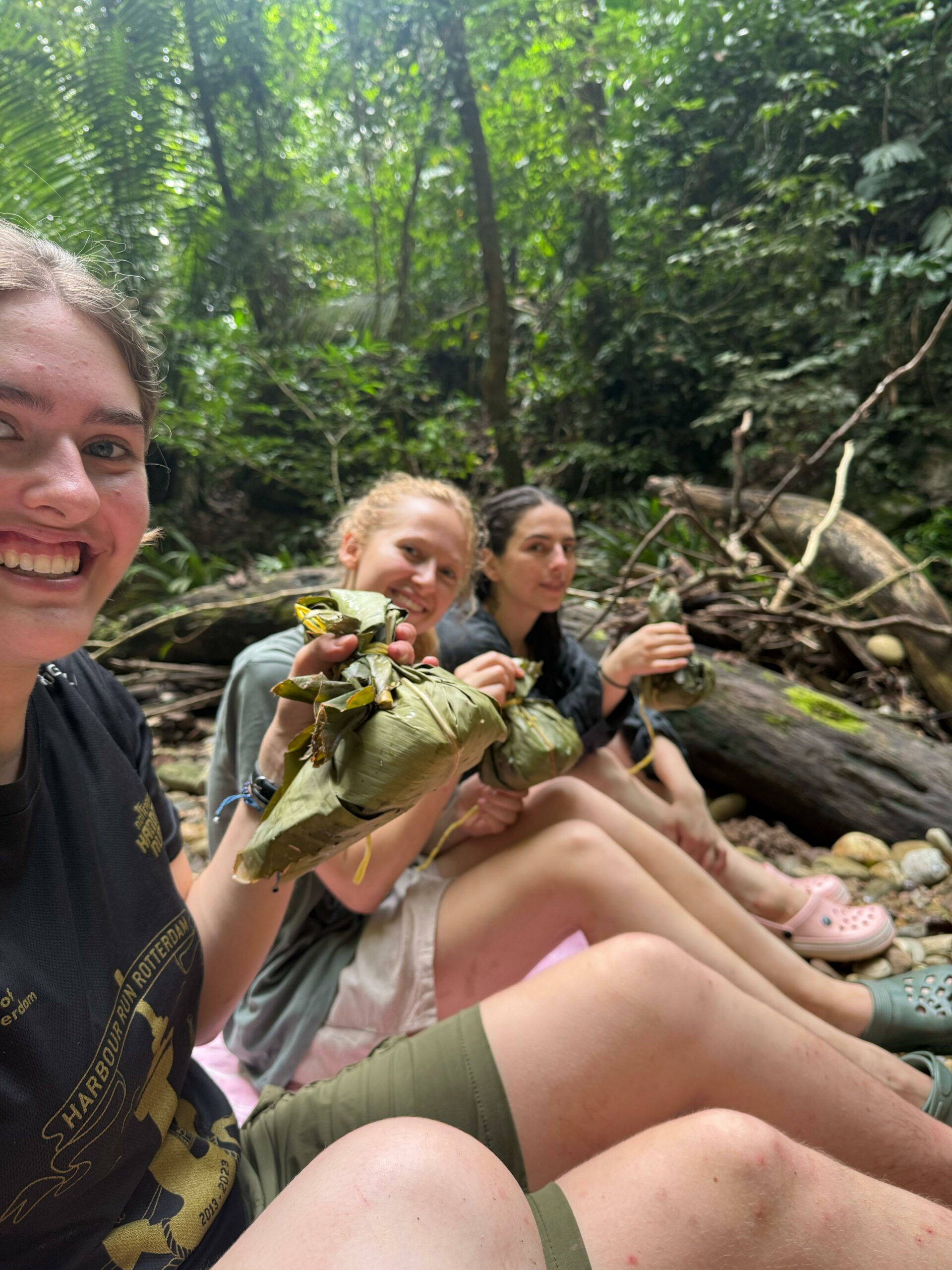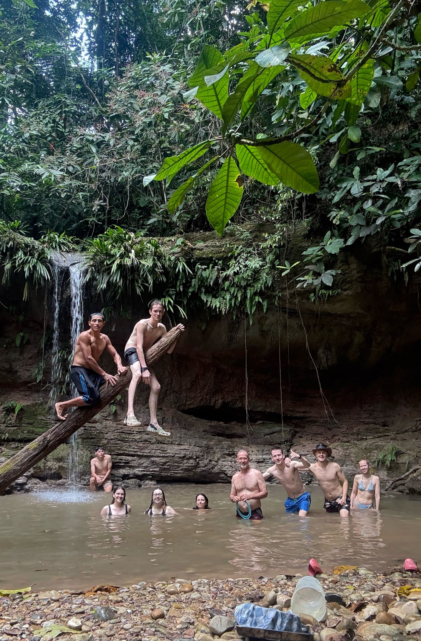As every June, we celebrated San Juan at our waterfall. The day honours Saint John the Baptist and highlights the Amazon’s deep connection to water. The celebration centres around the Juane, a dish made from rice, boiled eggs, olives, and local spices, wrapped in banana leaves. Family, volunteers, and local workers took their Juanes to the waterfall, enjoying a fun afternoon—a welcome break in a busy week!