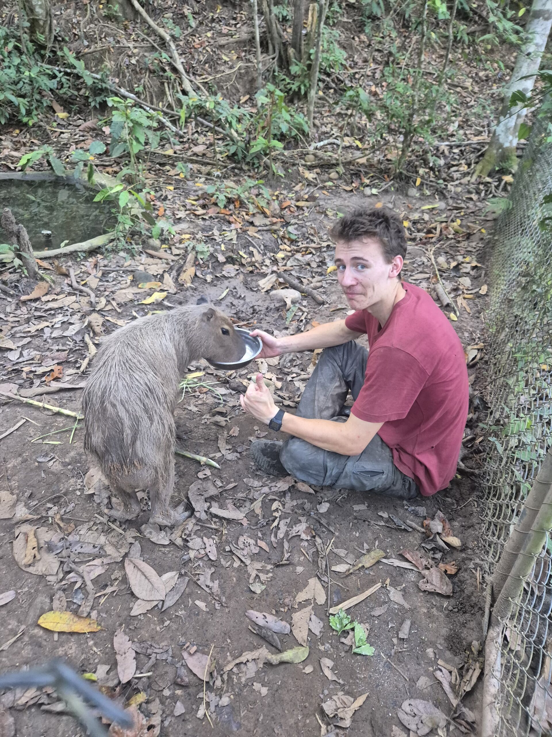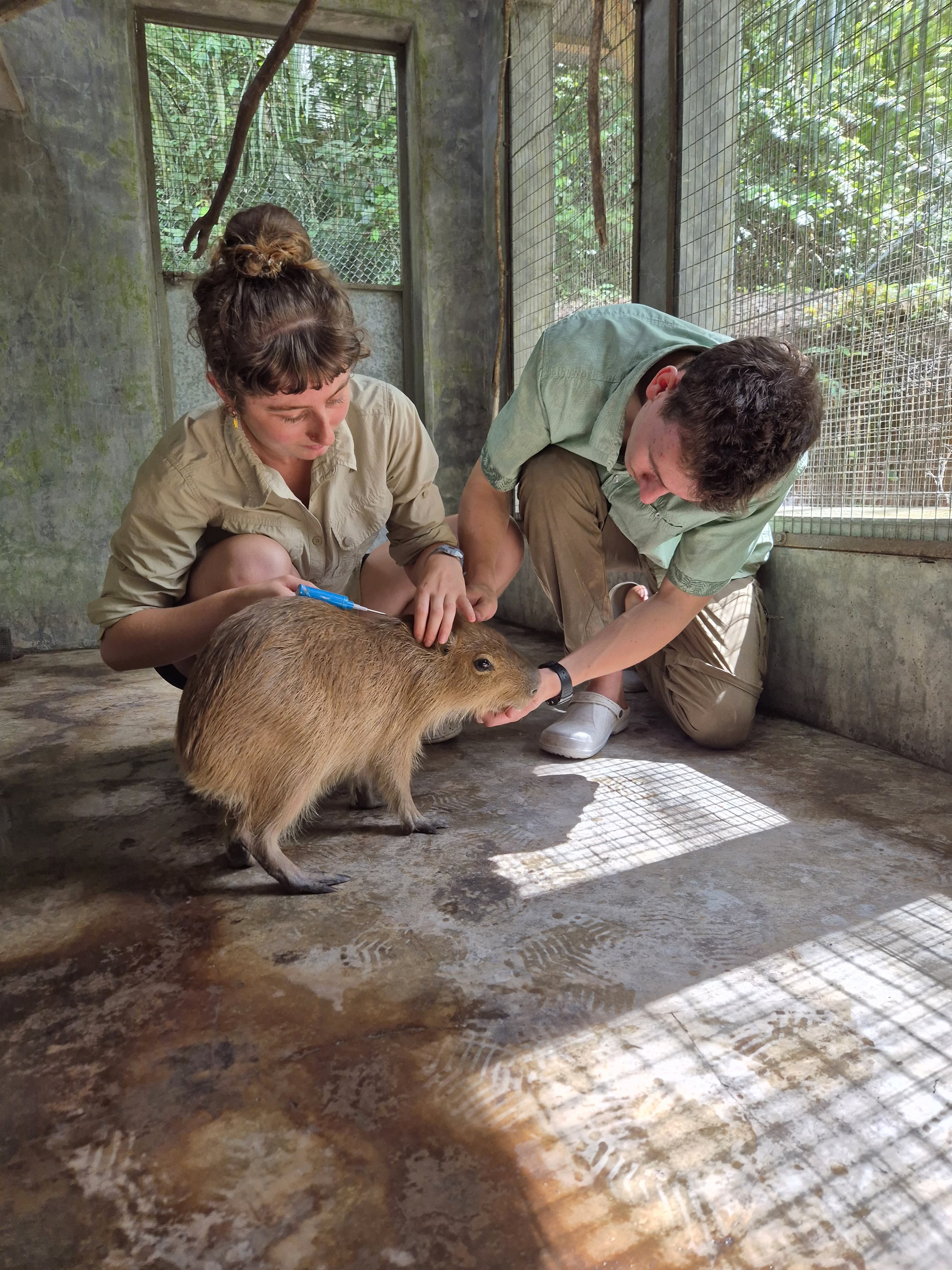 One challenging case has been and still is capybara Basco. Earlier this year, he was struggling with diarrhoea and weight loss We moved him to a cleaner enclosure, increased dietary fibre, and treated parasites. His condition fluctuated, but thanks to student volunteer Cas’s close care and Elja’s new treatments, Basco is still in good spirits with a healthy appetite. We hope he’ll soon regain his normal weight. Updates to follow!