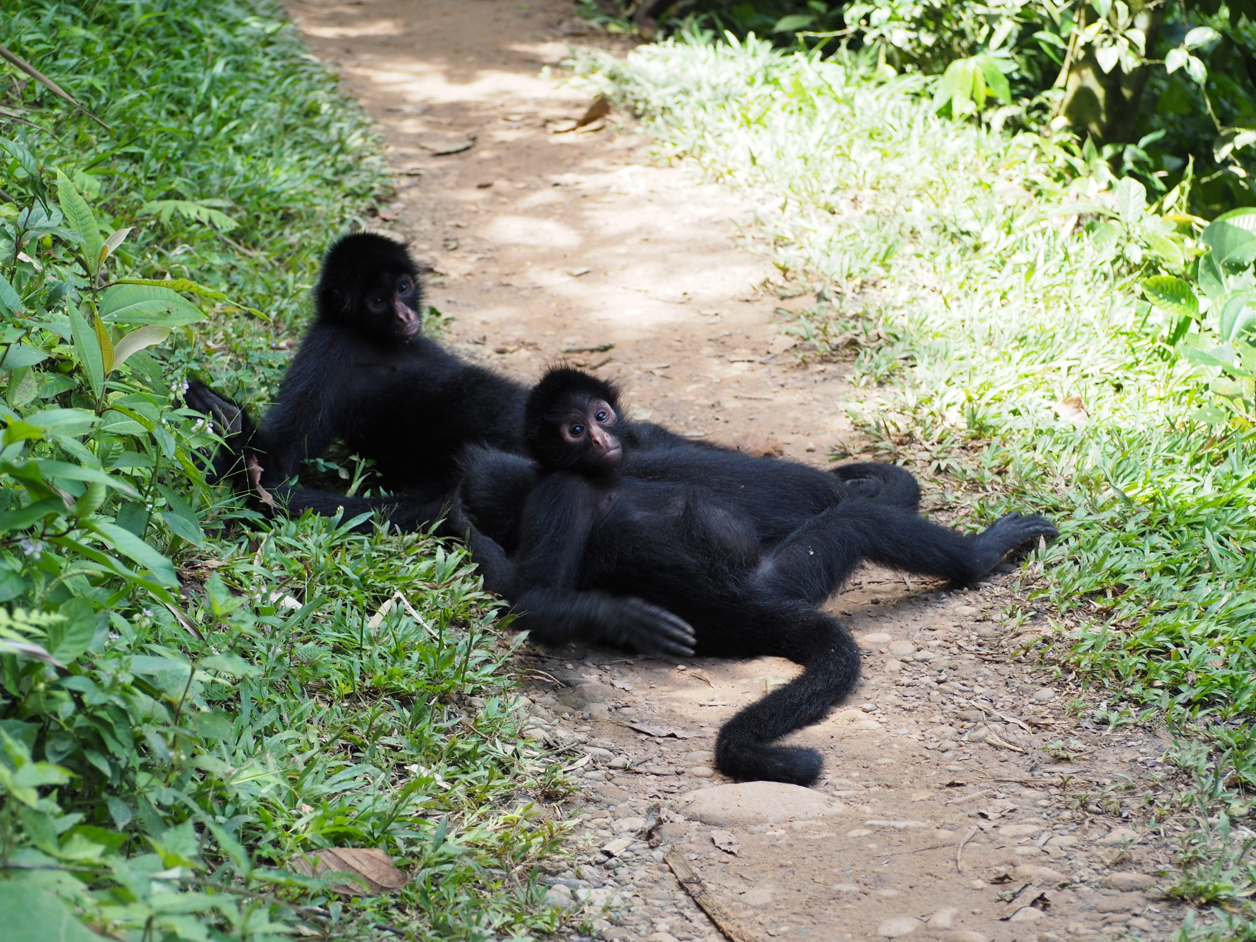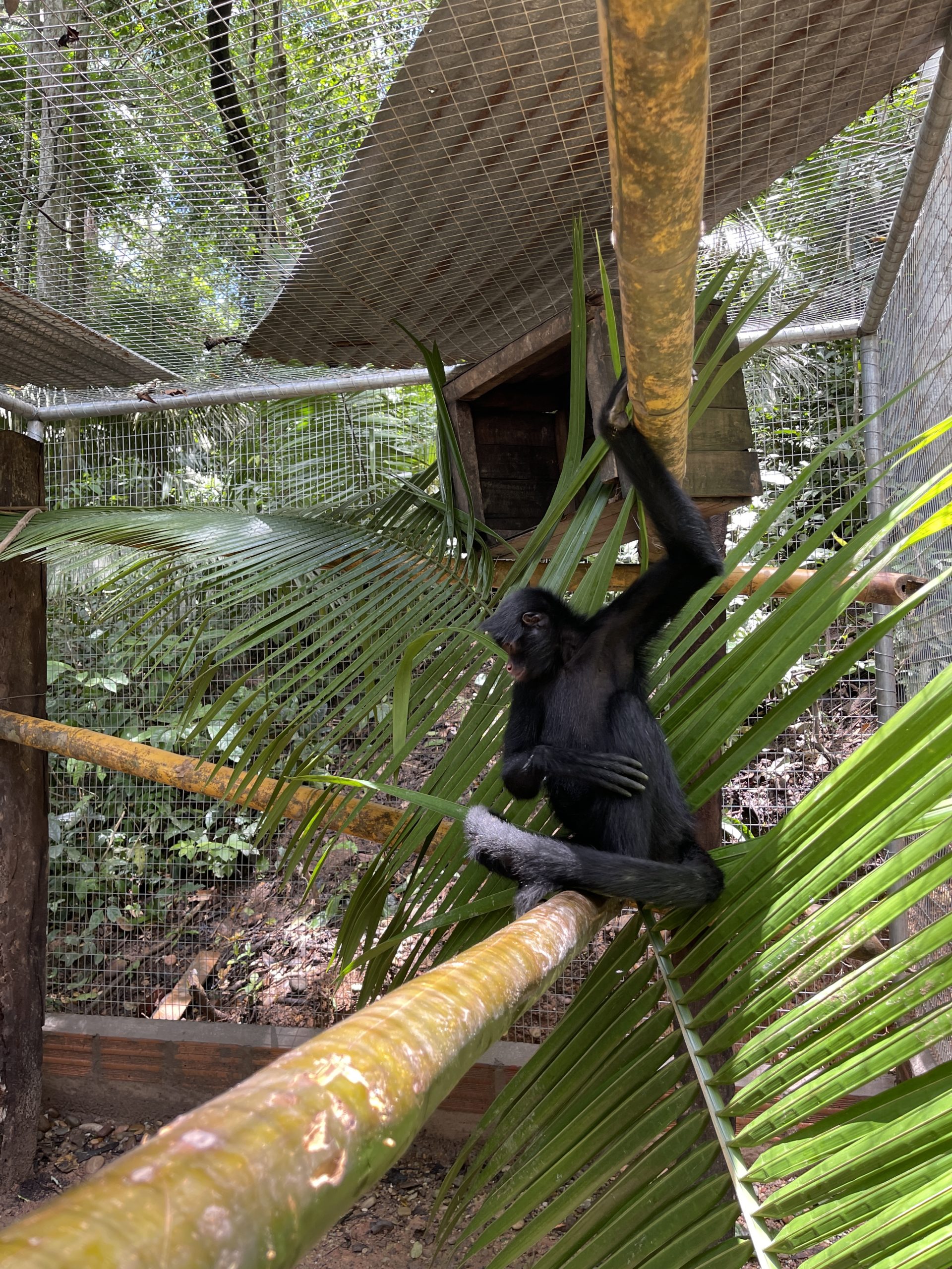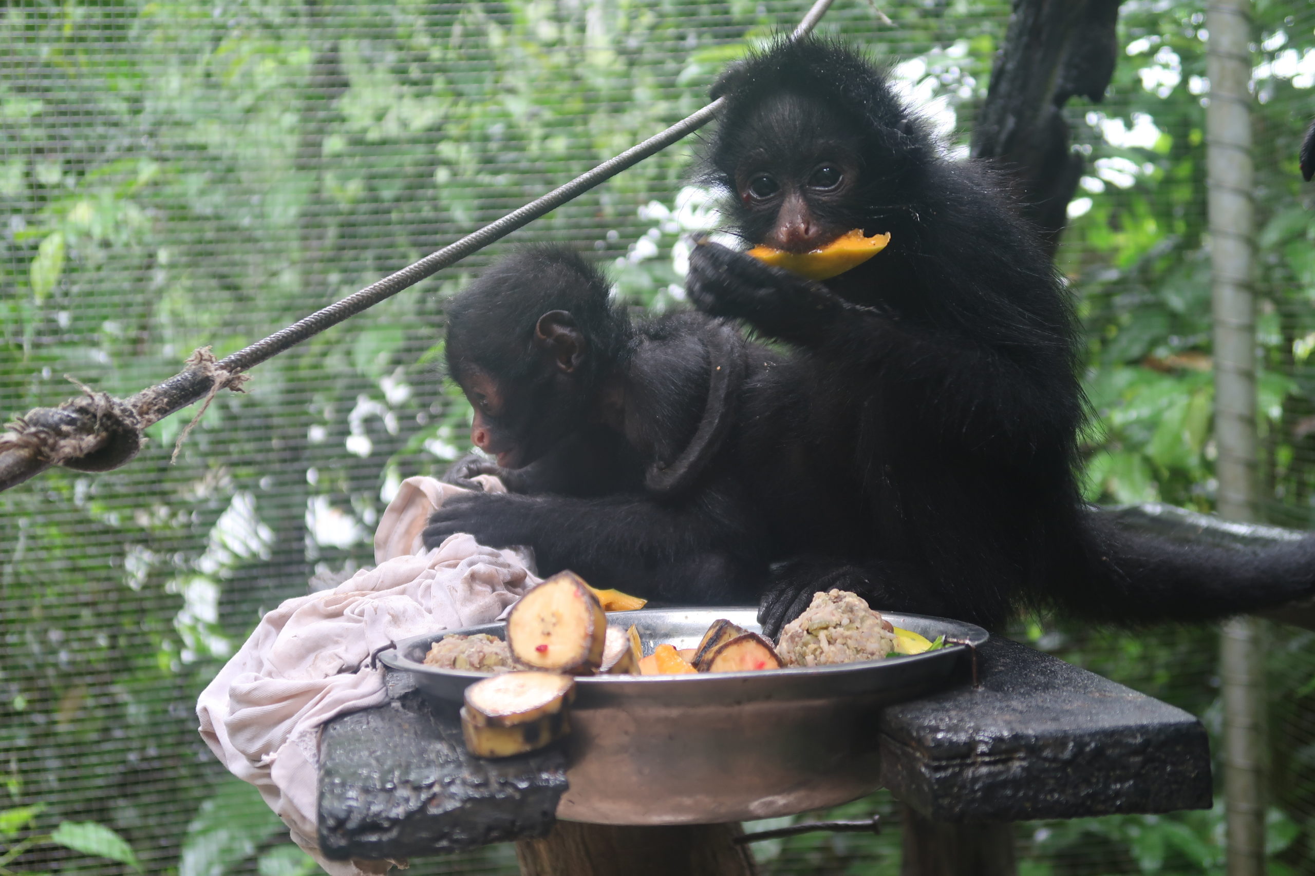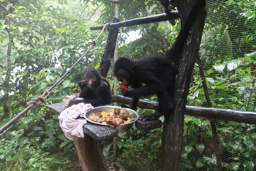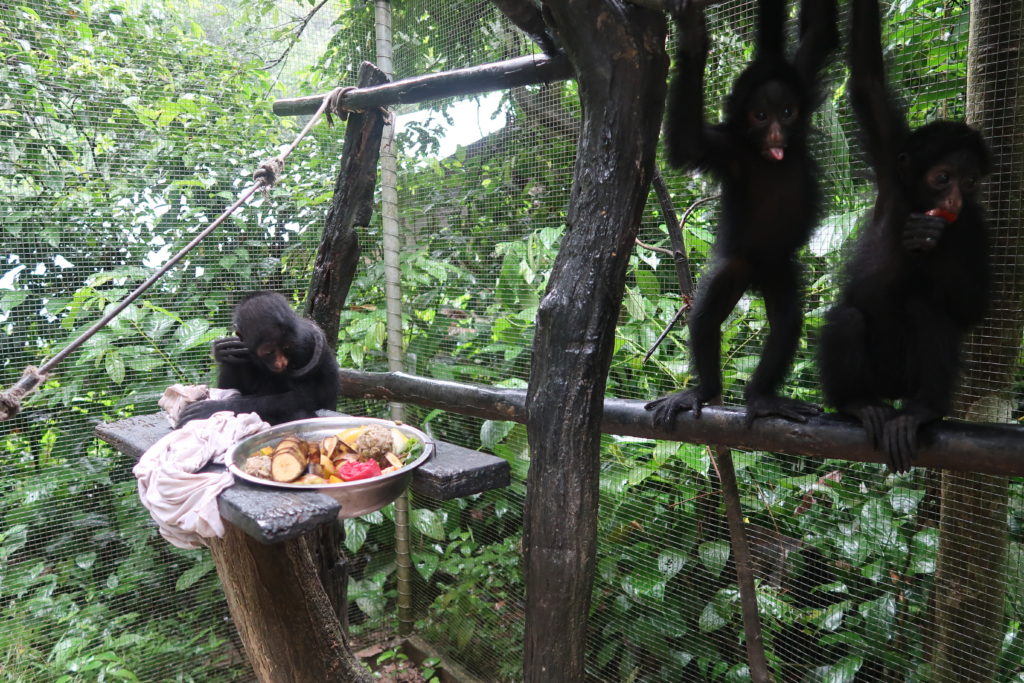 Katinka (juvenile female spider monkey) was very happy to be let back out of the new Araña enclosure to rejoin her friends outside. Following her surgery last month, her wound had healed well, and further treatment could be completed outside.