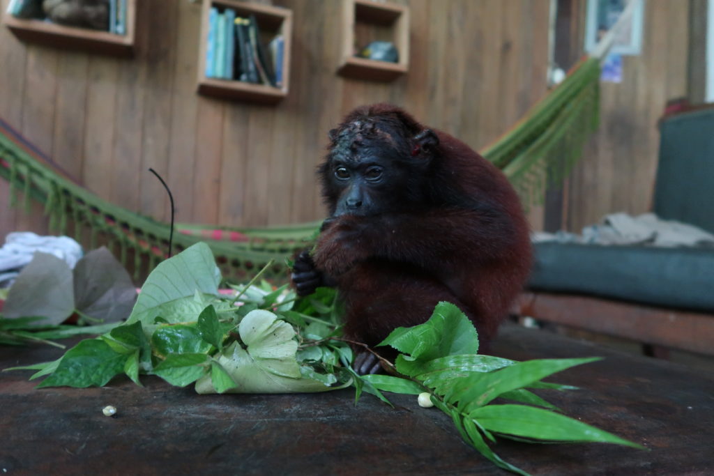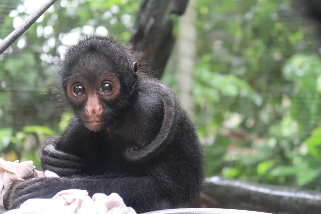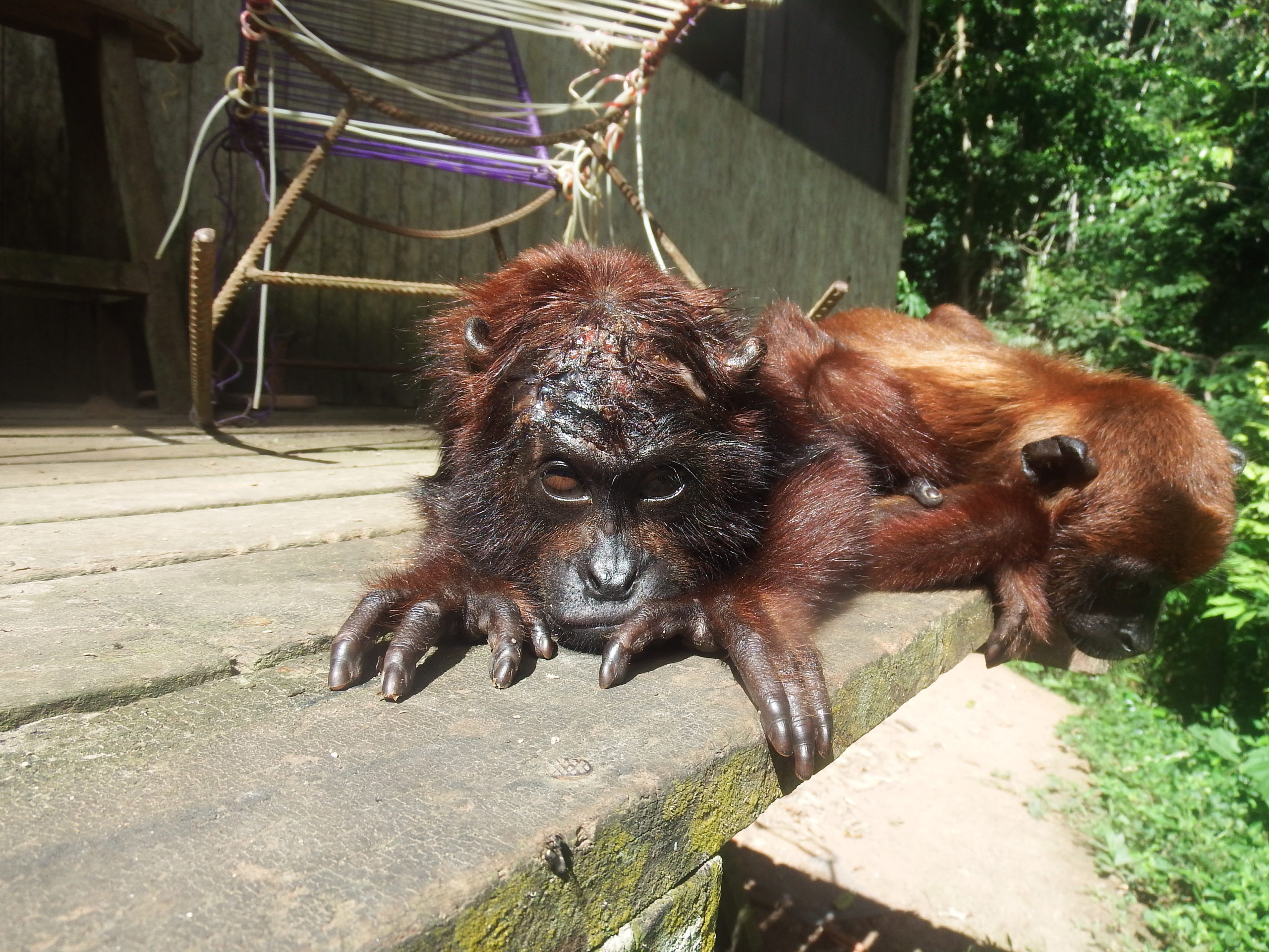 Watson, juvenile male howler monkey, now staying inside after getting bitten by another monkey