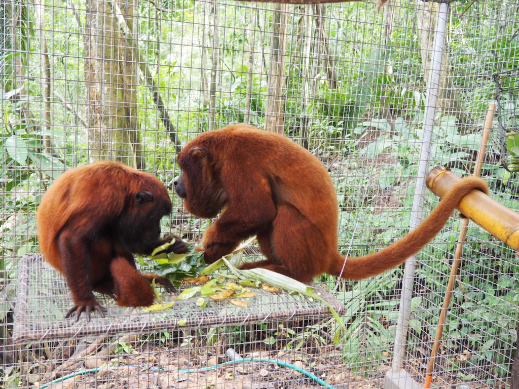 Armando and Darwin, male howler monkeys, at foodtime in Araña enclosure