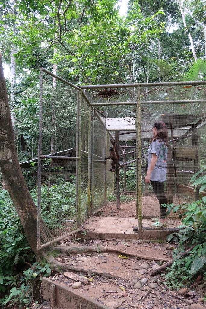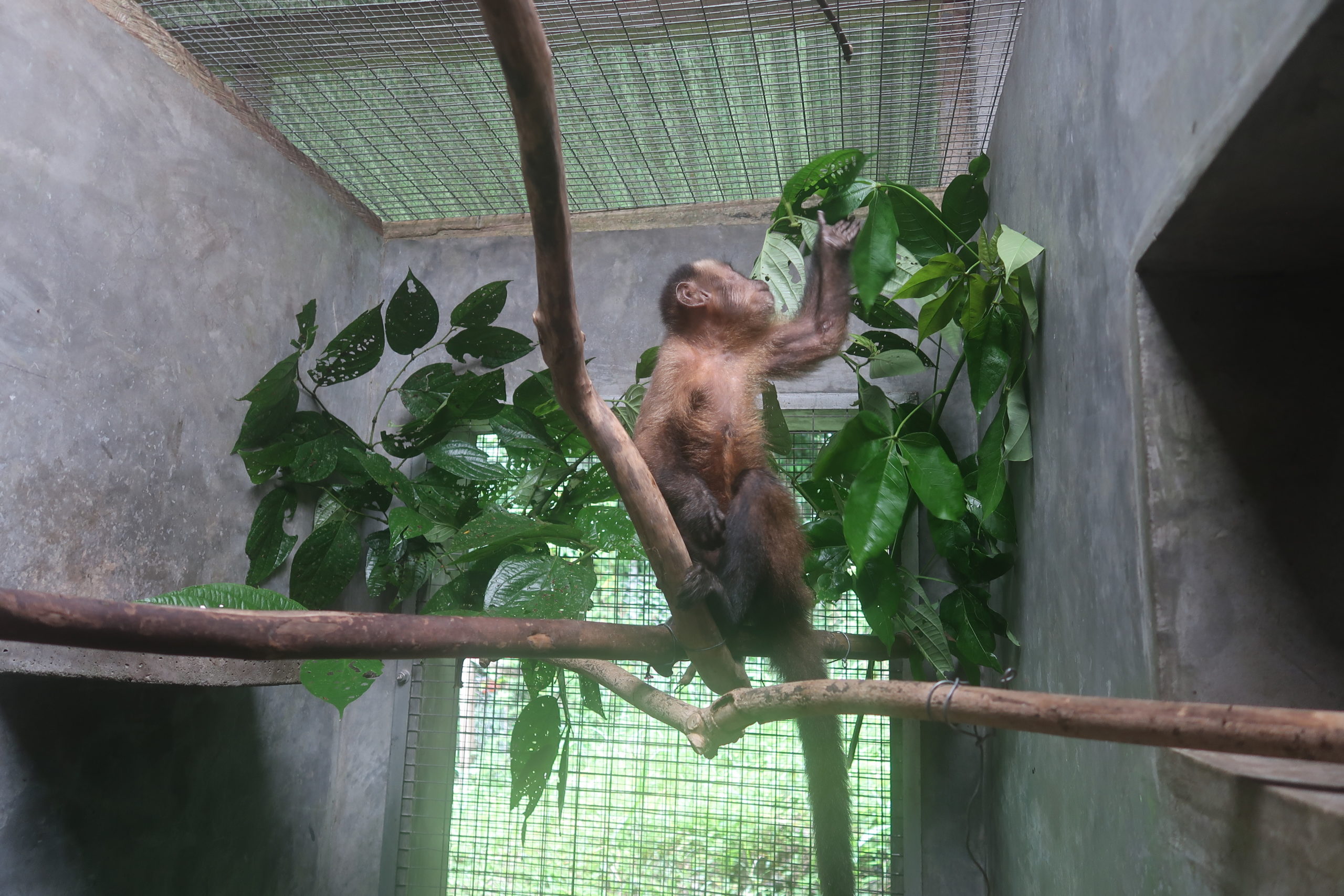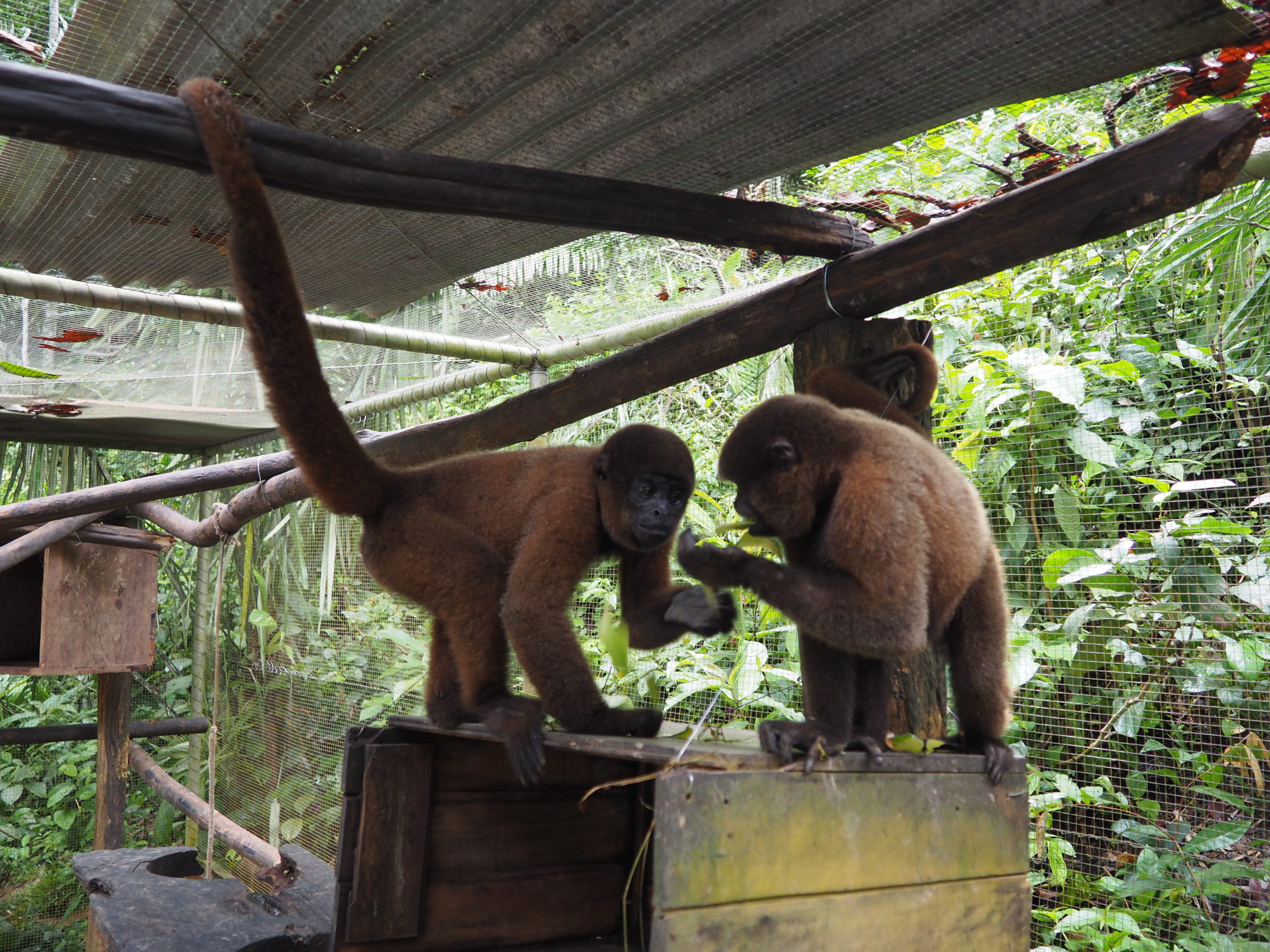 Keska (juvenile female woolly monkey) has made incredible progress over the last month after sustaining a head injury in February. She became more mobile and started to climb once again and was moved from the family house to the clinic, then shortly after into the Lulu enclosure, where she was joined by juvenile male woolly monkey Panchin. The two were released together shortly afterwards. It was amazing how quickly Keska recovered and we were all so happy to see her climbing in the trees again, only a month after her head injury! We are all impressed with the resilience and strength she’s shown us.