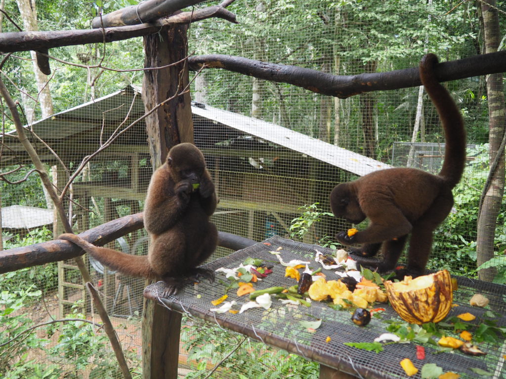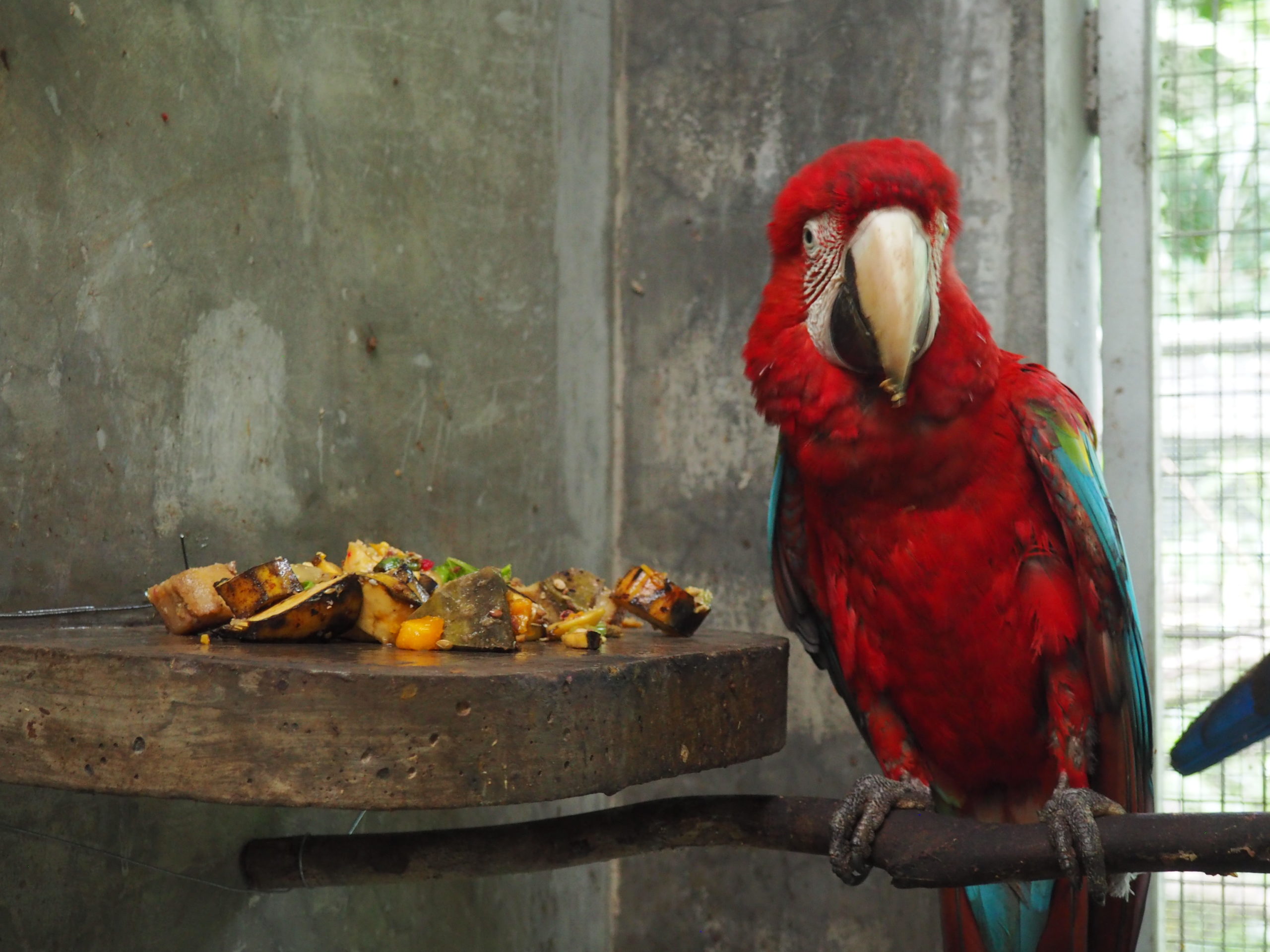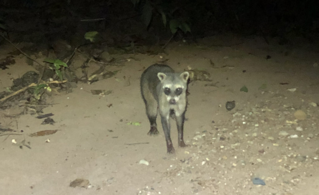 Payco (adult male crab-eating racoon) was released again this month from the Pepe enclosure. The wound on his back was healing slowly so he has been a resident for a long time. Once it had fully healed, he was ready to take on the outside world once again! He seems to be doing well and is spotted eating on his familiar outside feeding table. He even accompanied volunteers on a night walk with Takido (juvenile male crab-eating raccoon).