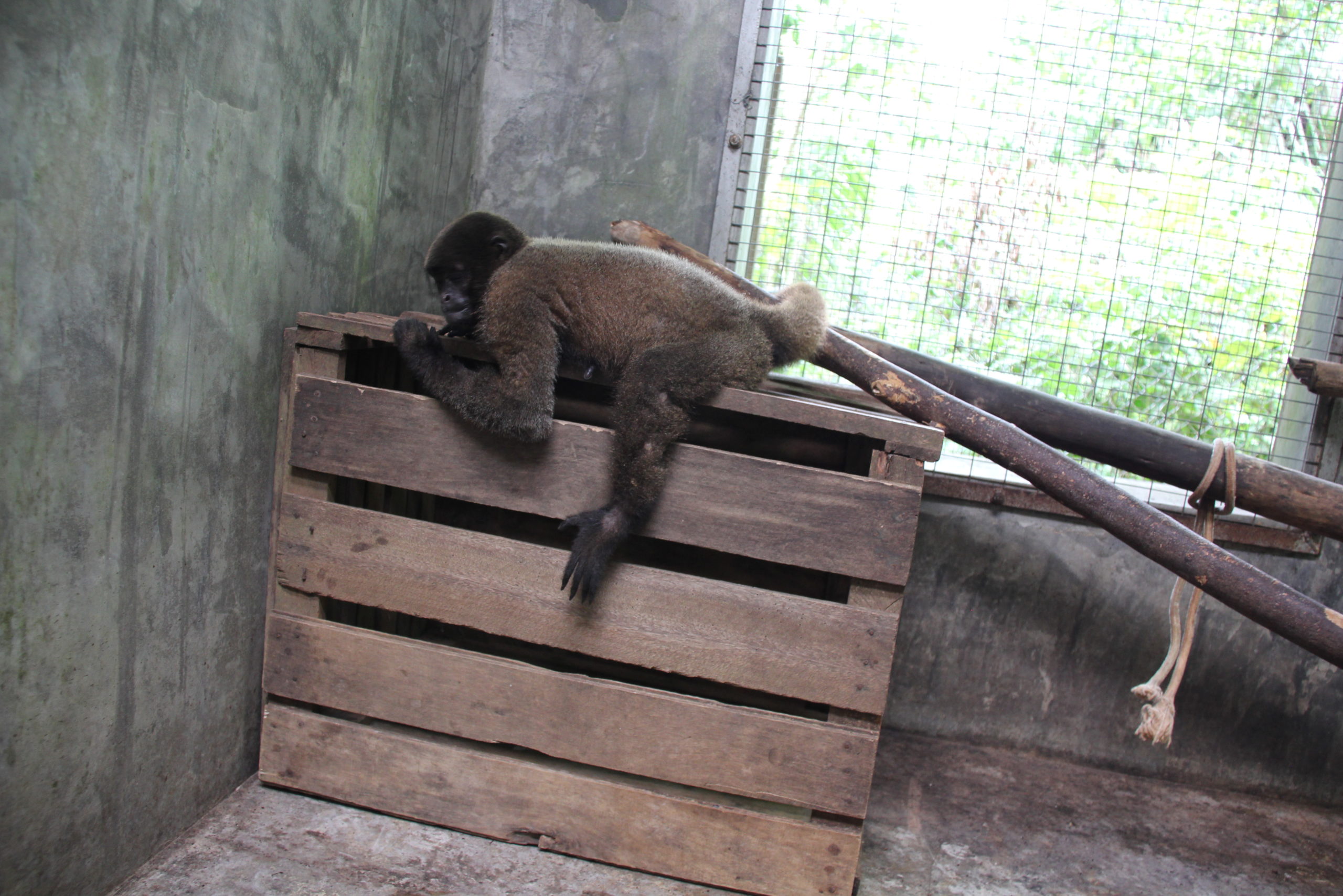 Keska, juvenile female woolly monkey, released from of Lulu enclosure