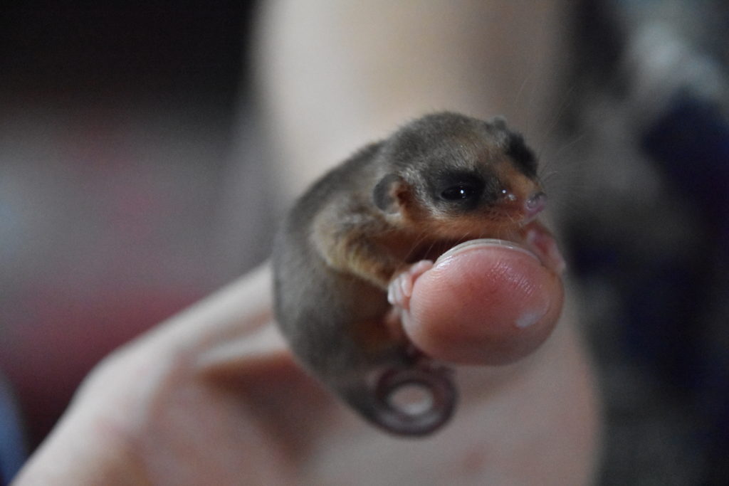 There were some unexpected guests at the volunteer house this month. Volunteers were surprised to discover some mouse opossum babies in the attic of the house and after it became clear that their mother was not going to return, the decision was made to move the babies into a self-made incubator. Unfortunately so small not all made it but after a bit of a rough start Rasta (male) starting at a weight of 6.6g, is steadily gaining weight and greedily drinking milk via syringe under intensive care by our dedicated volunteers.