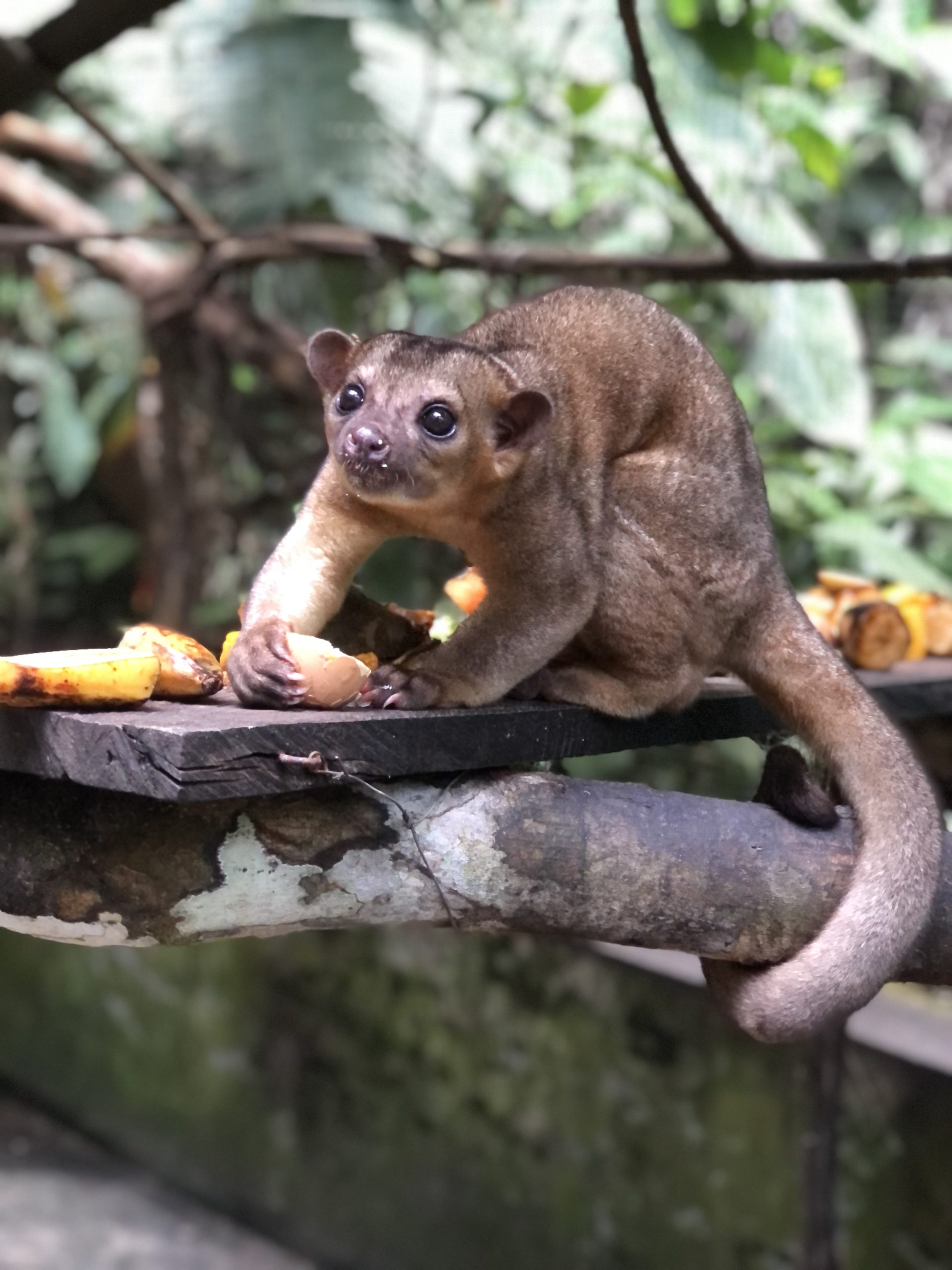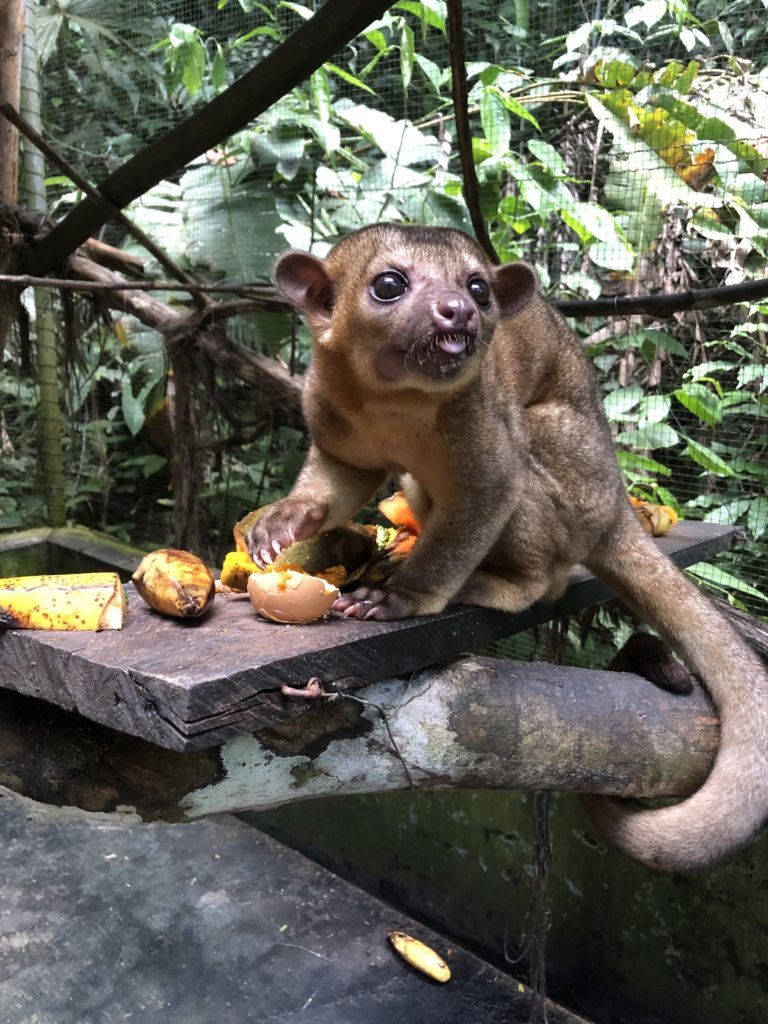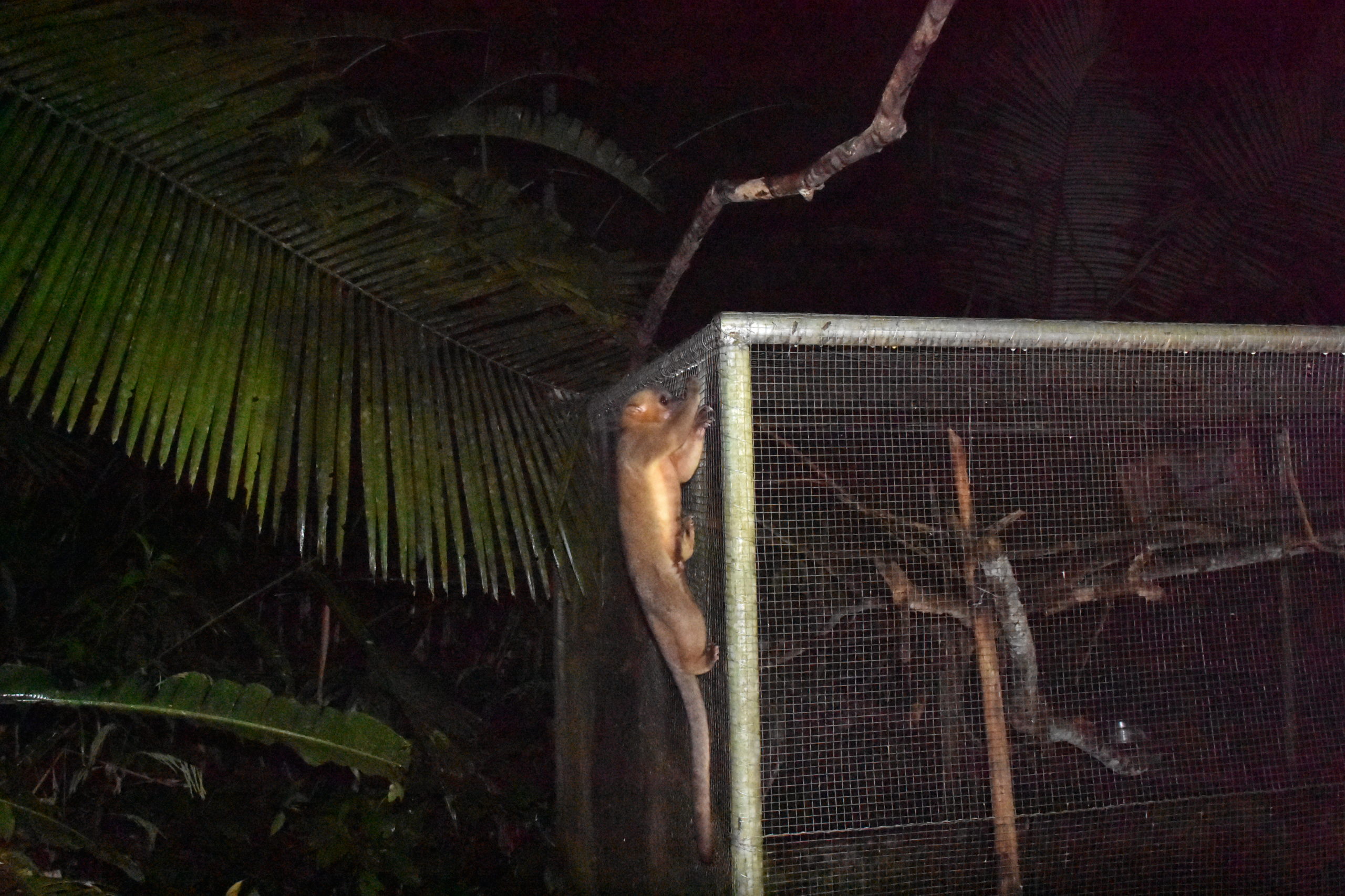 Yuno (adult male kinkajou) was released this month from Aguatena enclosure, his taste of freedom was short lived, as he returned a few days later with some wounds that required treatment. Kinkajous are territorial animals and fighting between males is common in the wild. As kinkajous are known to us to be tough animals, we were not surprised Yuno made a speedy recovery so we could open the hatch again for him to give it another try outside. We hope with the experience learned he will act more carefully in the future.