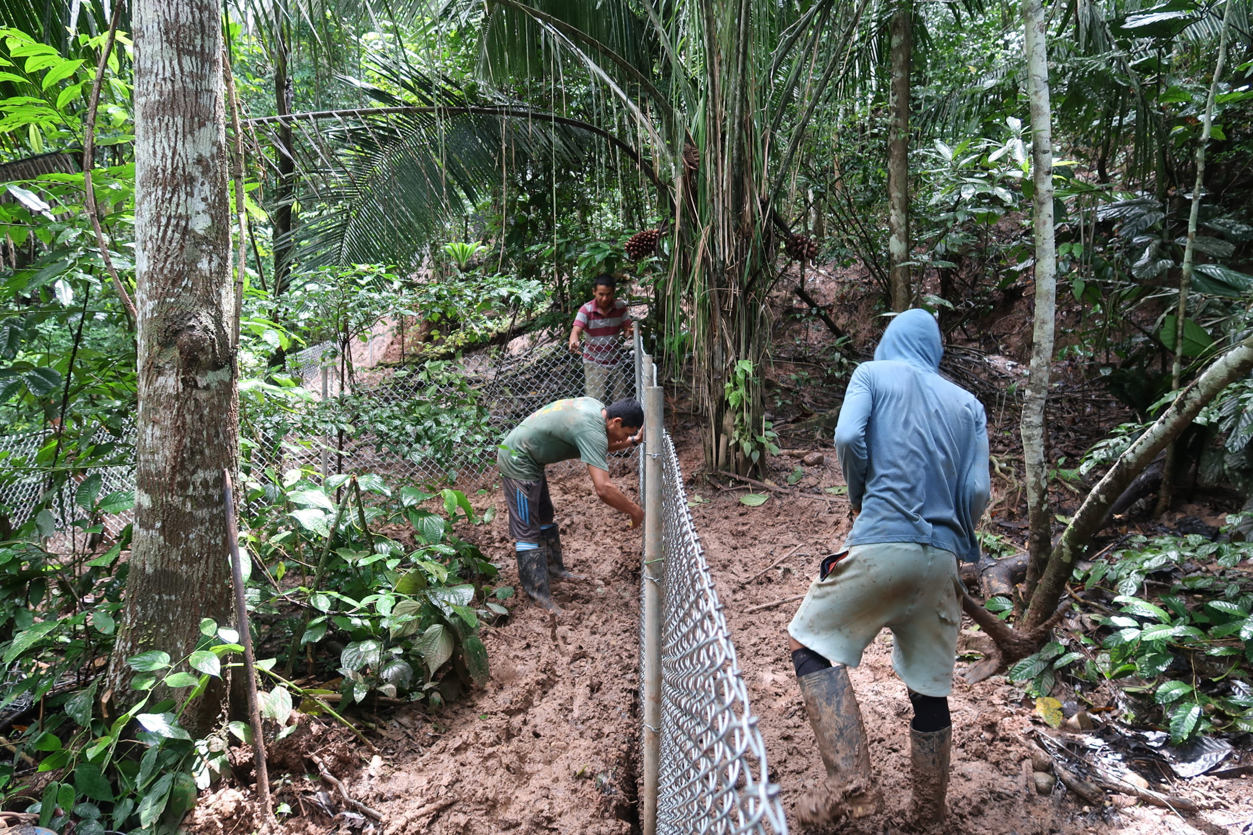 The work on Rincay enclosure has continued and is making progress, although with all the rain fall it has not always been possible to work outdoors. We do hope that soon the enclosure will be fit for Bronco (male young adult capybara) who now resides in Momo enclosure, and a start can be made on the Ocelot and Margay enclosures. The extra rain means Douwe can work in the village welding doors and other prefabricated parts for the cat enclosures.