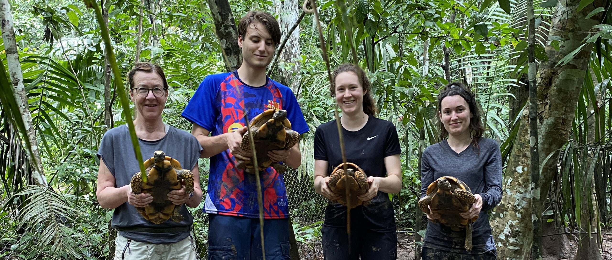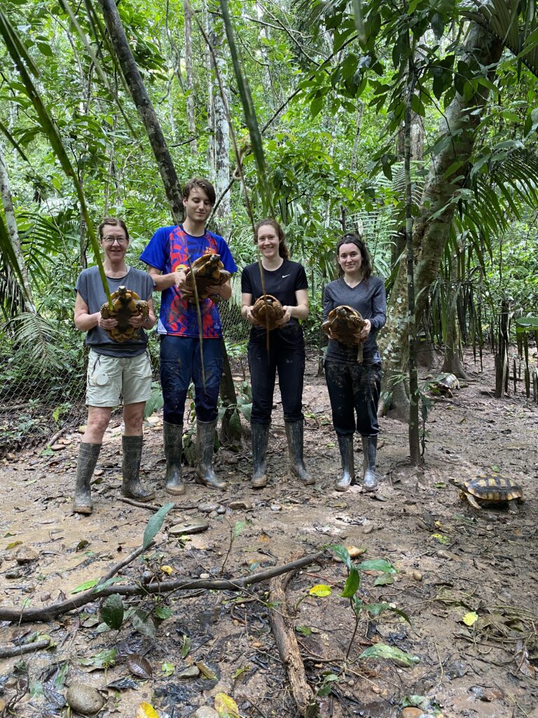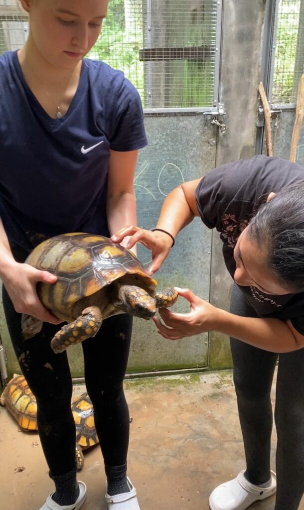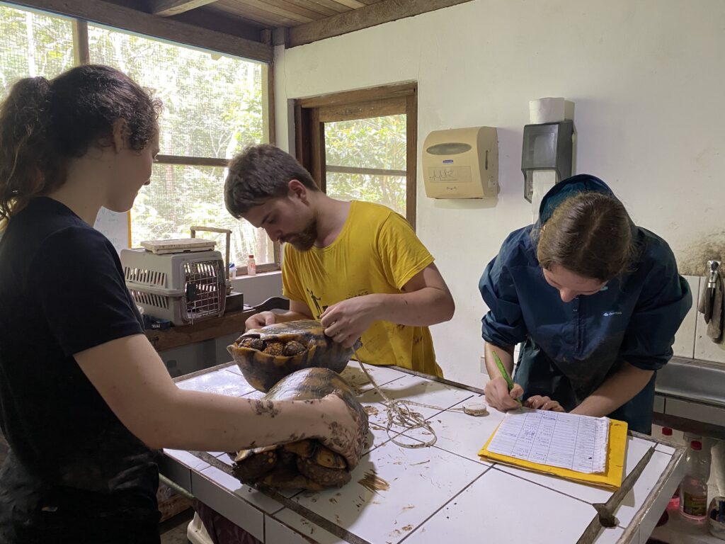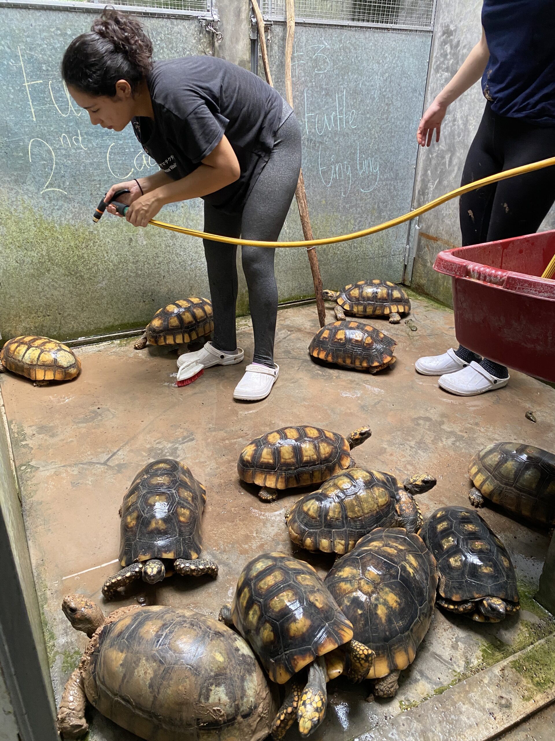 If you’ve volunteered with us, you know the ‘find all the turtles in the reptile cage’ game very well. If you haven’t, it’s what happens when we need to examine the 18 yellow-footed tortoises. The tick removal and weighing went well, and back down the 27 steep steps from the clinic again they went. A great team effort!
