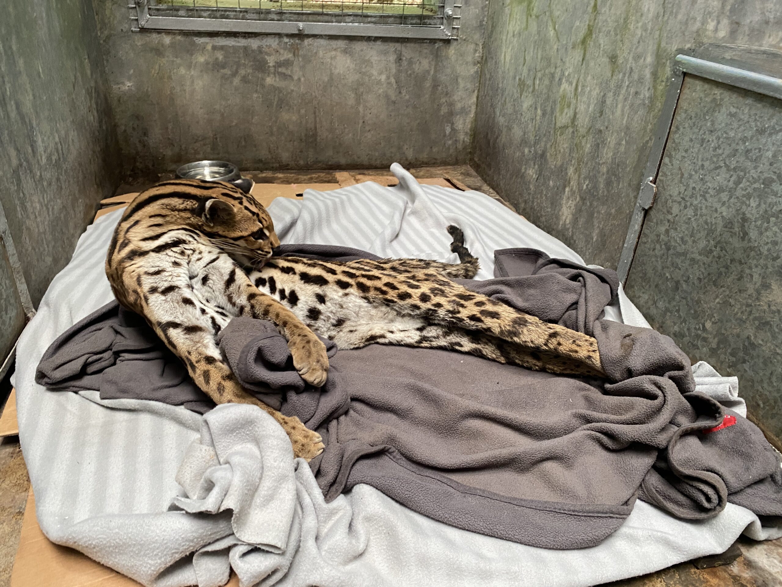 It saddens our hearts whenever we bring bad news, but alas, animal rehabilitation and wildlife rescue isn’t for the faint-hearted. Diego (adult margay) died this month. His movement was off, so we brought him to the clinic. After two weeks of tireless work by volunteers, specialists and vets (both here and in Europe), he passed away. Everybody fought so hard, especially Diego, but it wasn’t in the stars. He had several enriching years with Grety (adult female margay) and he will be hugely missed.