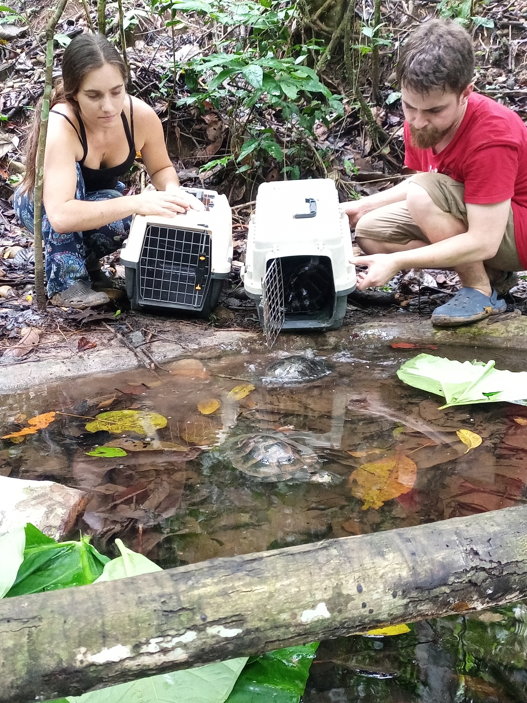 A male juvenile capuchin, a white caiman and four yellow-spotted river turtles walk into a bar… called Esperanza Verde… which is actually a wildlife rescue centre…