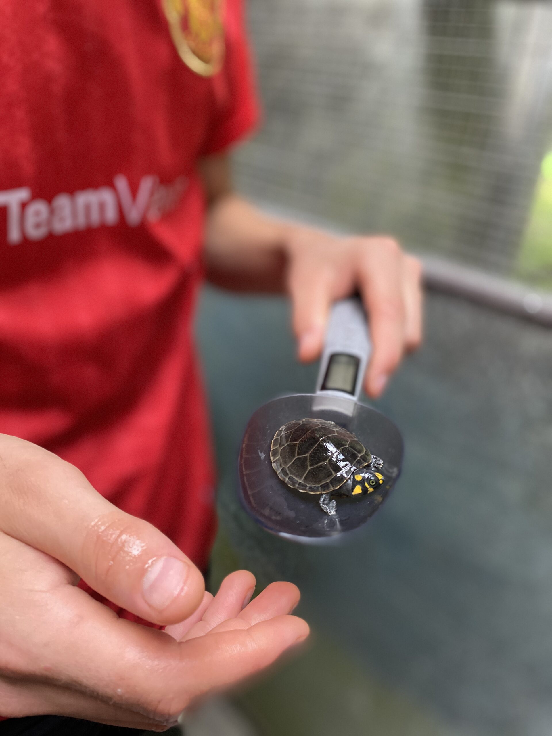 New month, new animals: Maiko (male juvenile capuchin), caiman Lakosta and yellow spotted river turtles Korra, Ircha and Dago. Ircha, also a yellow spotted river turtle, weighing in at a teeny 12,3 grams, got a special place in the clinic to buff up a bit.