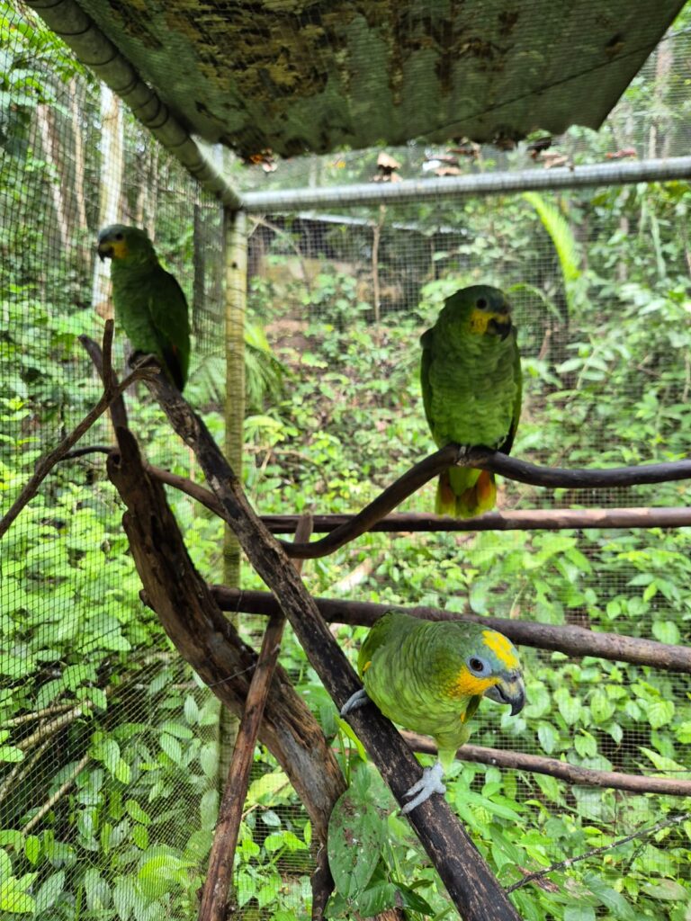 Although their quarantine period was over, we had five residents in Quarantine for a while: mealy parrot Santiago and orange-winged Amazon parrots Sucre, Cusco, Manwe, and Eolus. Finding the right place for them was a challenge. But luckily we figured it out.