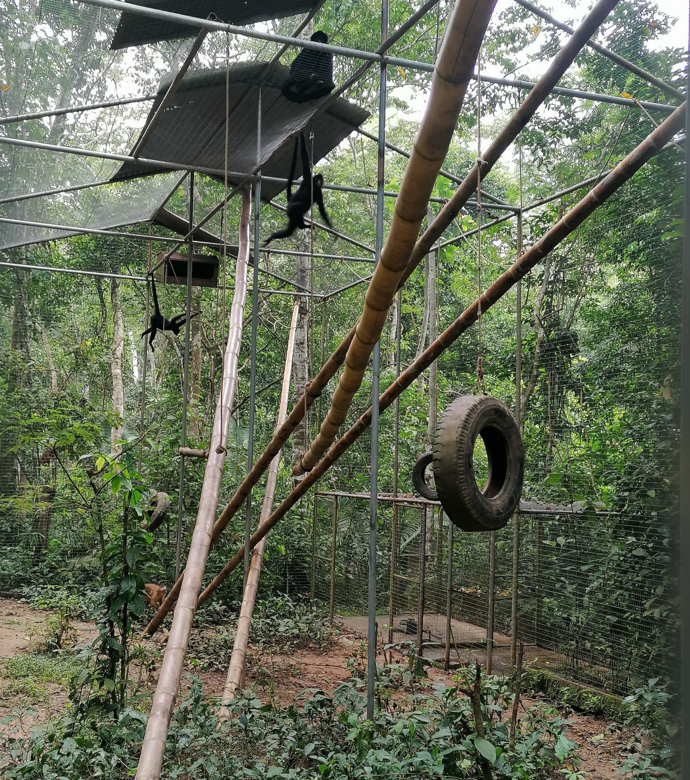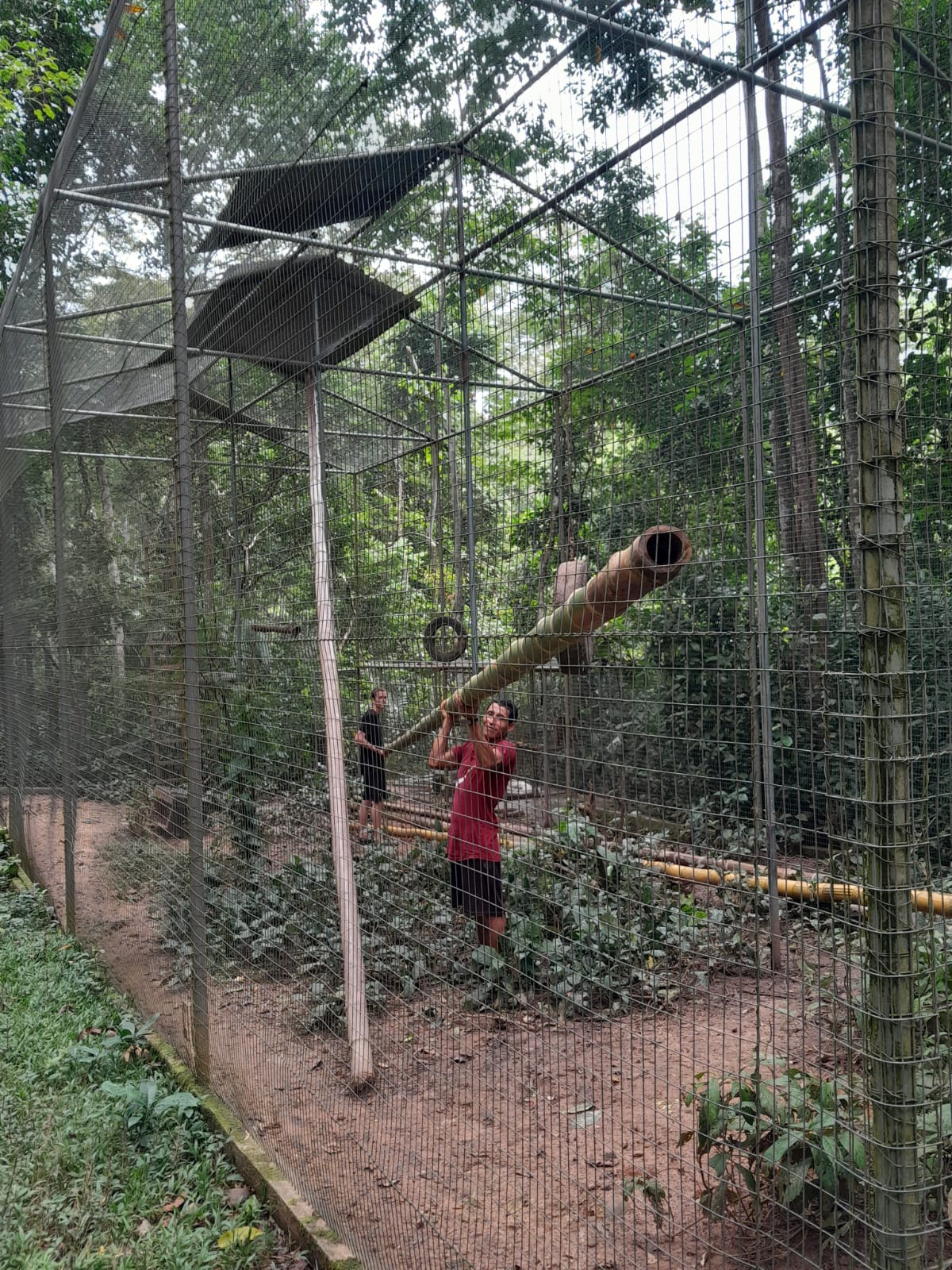 Monkey enclosure Rimaq received an update. Douwe, Geyler, Elias and Marlon worked hard to rebuild climbing structures, add new enrichment and put a new floor in the front cage. When the monkeys returned, they immediately started exploring and swinging around.
