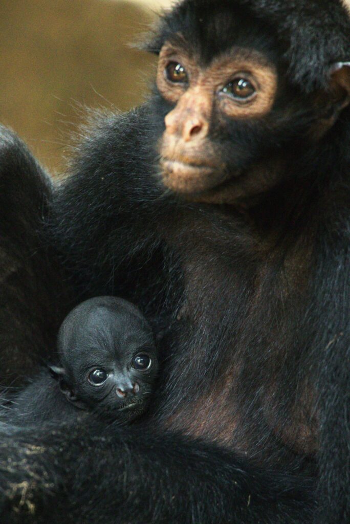 We are happy to share baby news! Spider monkey Cumala has given birth to a healthy baby girl named Curana. She is Cumala’s fourth baby, after son Camu, daughter Chula and son Cumbo. She is a very proud mother, showing off her baby to anyone who passes by.
