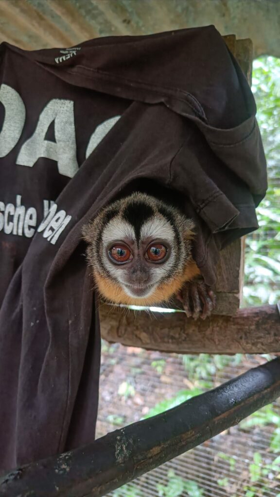 We also have several successful releases to share. Night monkey Odina, who was confiscated from a park where she was used as a photo prop for tourists, has returned to the forest. After just a few months of rehabilitation, we got her back to natural monkey behavior. She is now back to where she belongs, living freely in the jungle.