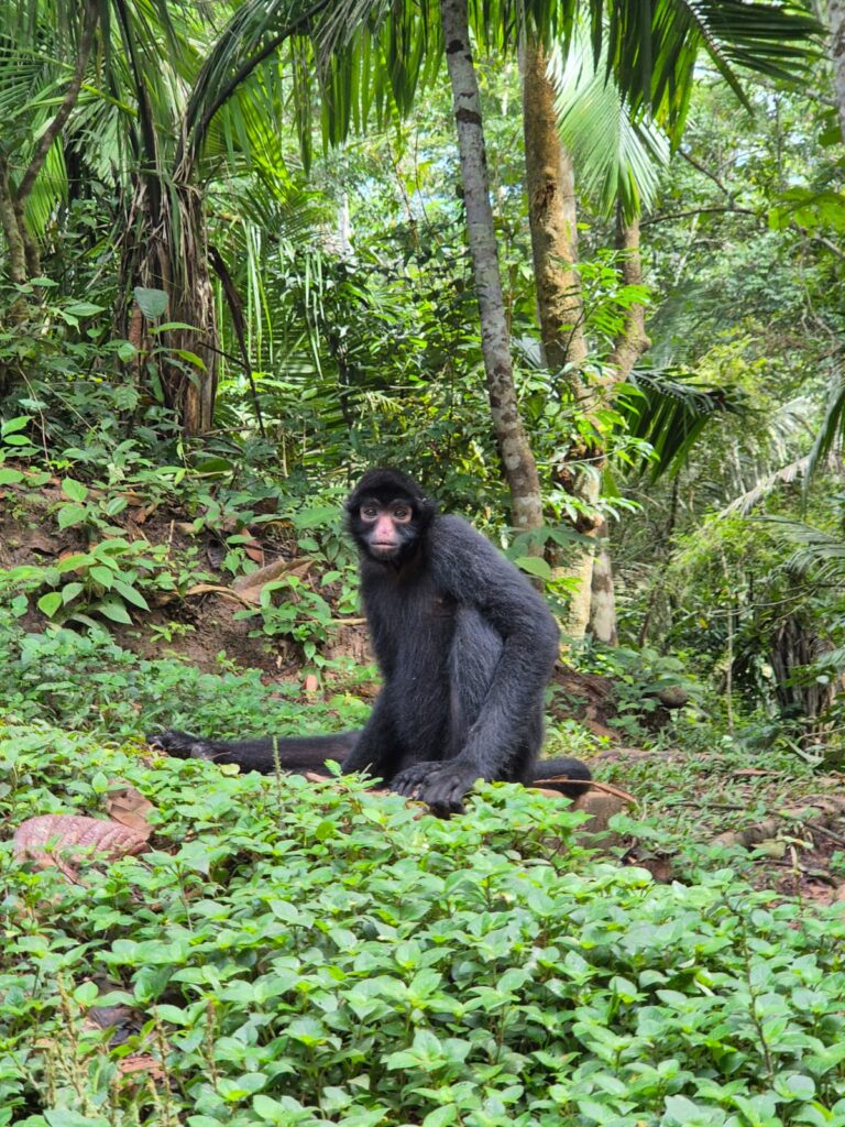 Spider monkey Lumina was released already last year, but she struggled to connect with the outside group of spider monkeys. We decided to give her more time by temporarily closing her back in, allowing her to strengthen bonds with the group. This patience paid off, and she is now roaming freely through Esperanza Verde.
