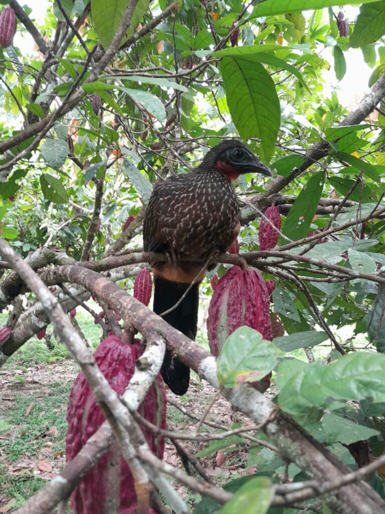Spix’s guan Fatou was brought to us as a tiny chick with head trauma, needing constant care. After a full recovery, he was moved to plantation Don Jorge, where he now roams freely, enjoying the richness of lots of insects and following Machico wherever he goes.