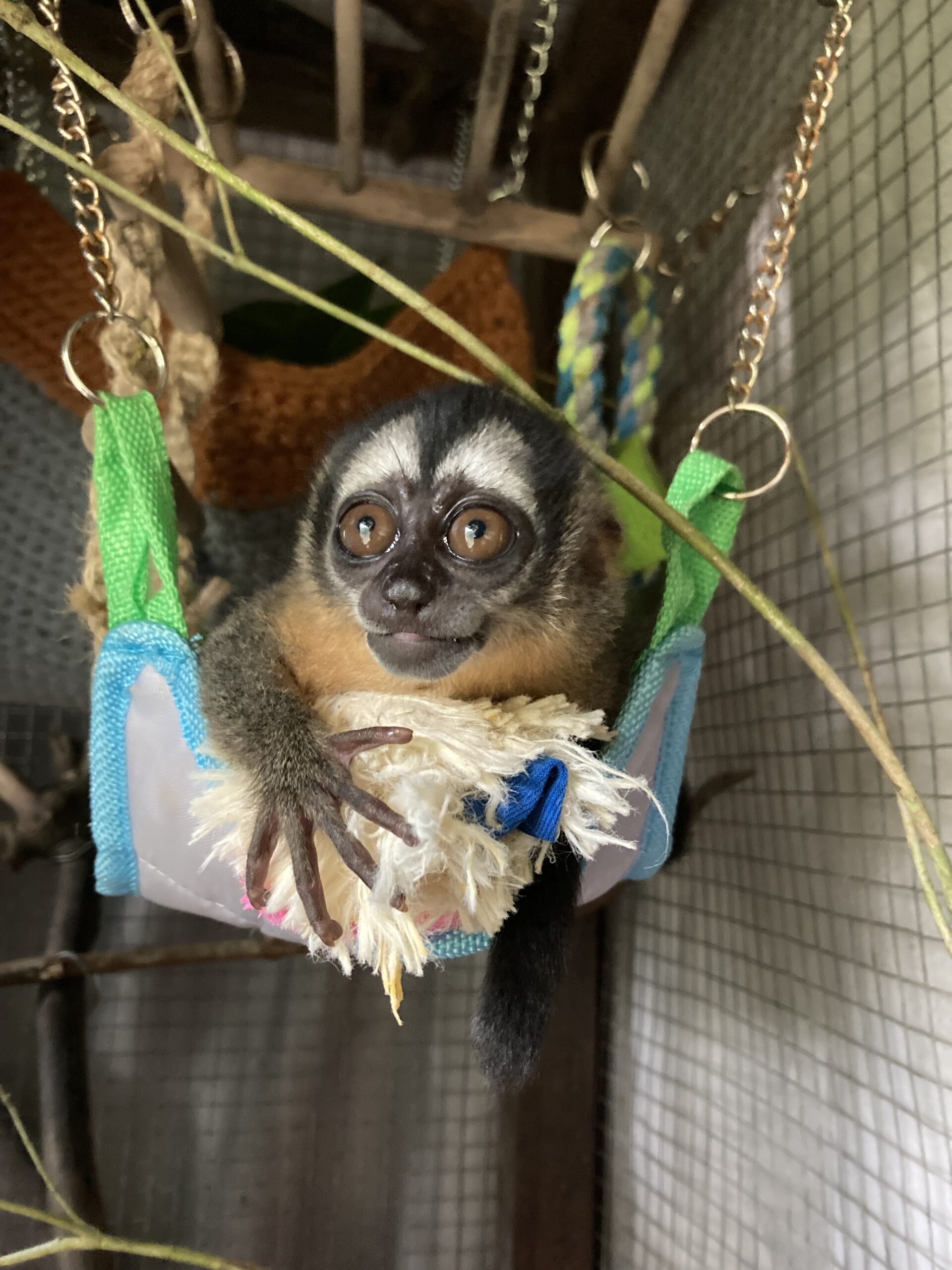 Unfortunately, the spot in the clinic didn’t stay empty for long. Morena (adult female woolly monkey) was spotted lethargic laying on the ground, not being her normal happy self. She’s getting intensive care in the clinic, with extra attention and efforts to stimulate her appetite, while we try to get to the root of her behavioural change.