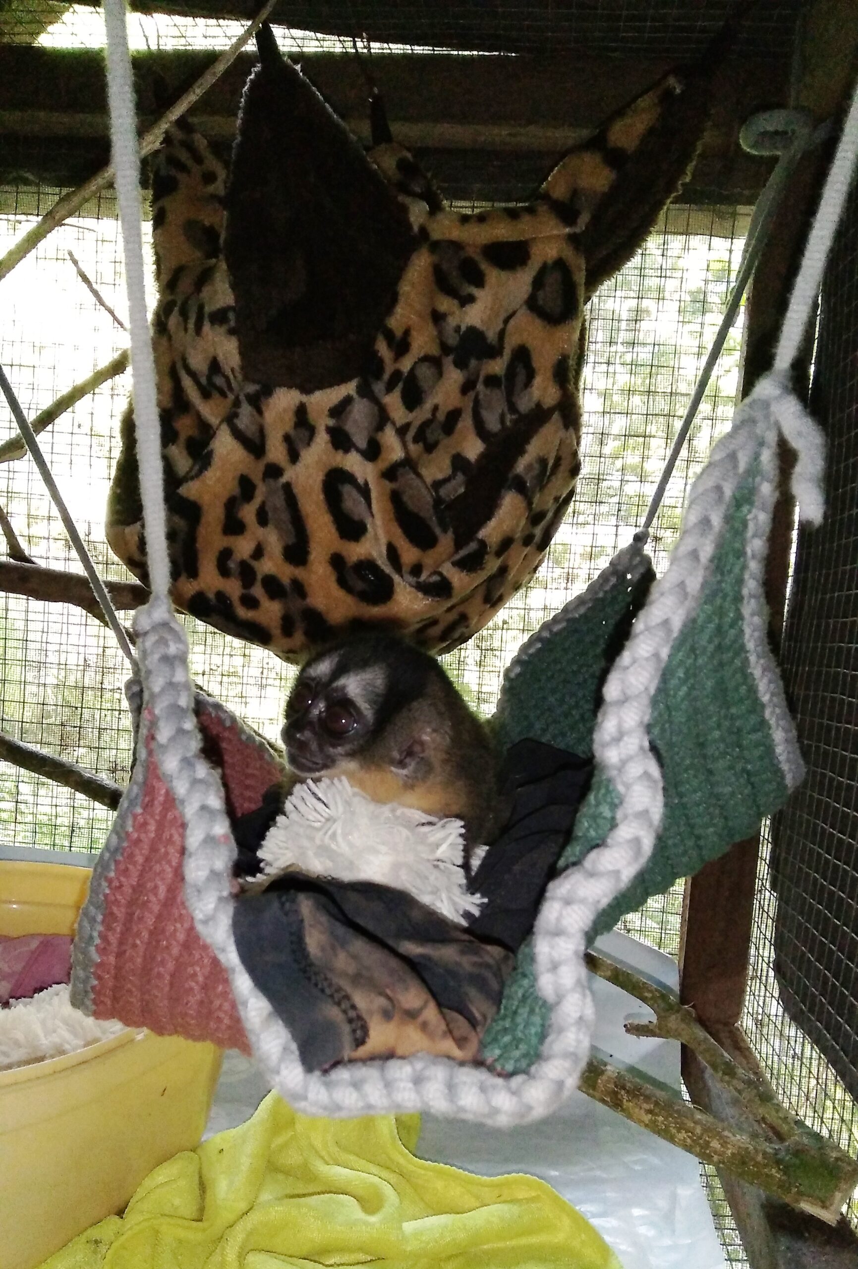 After putting on more weight and eager for company, Panchin (almost adult male woolly monkey), is giving outside-life another go. He has spent many weeks in the clinic so we’re hoping this time it’s for good.