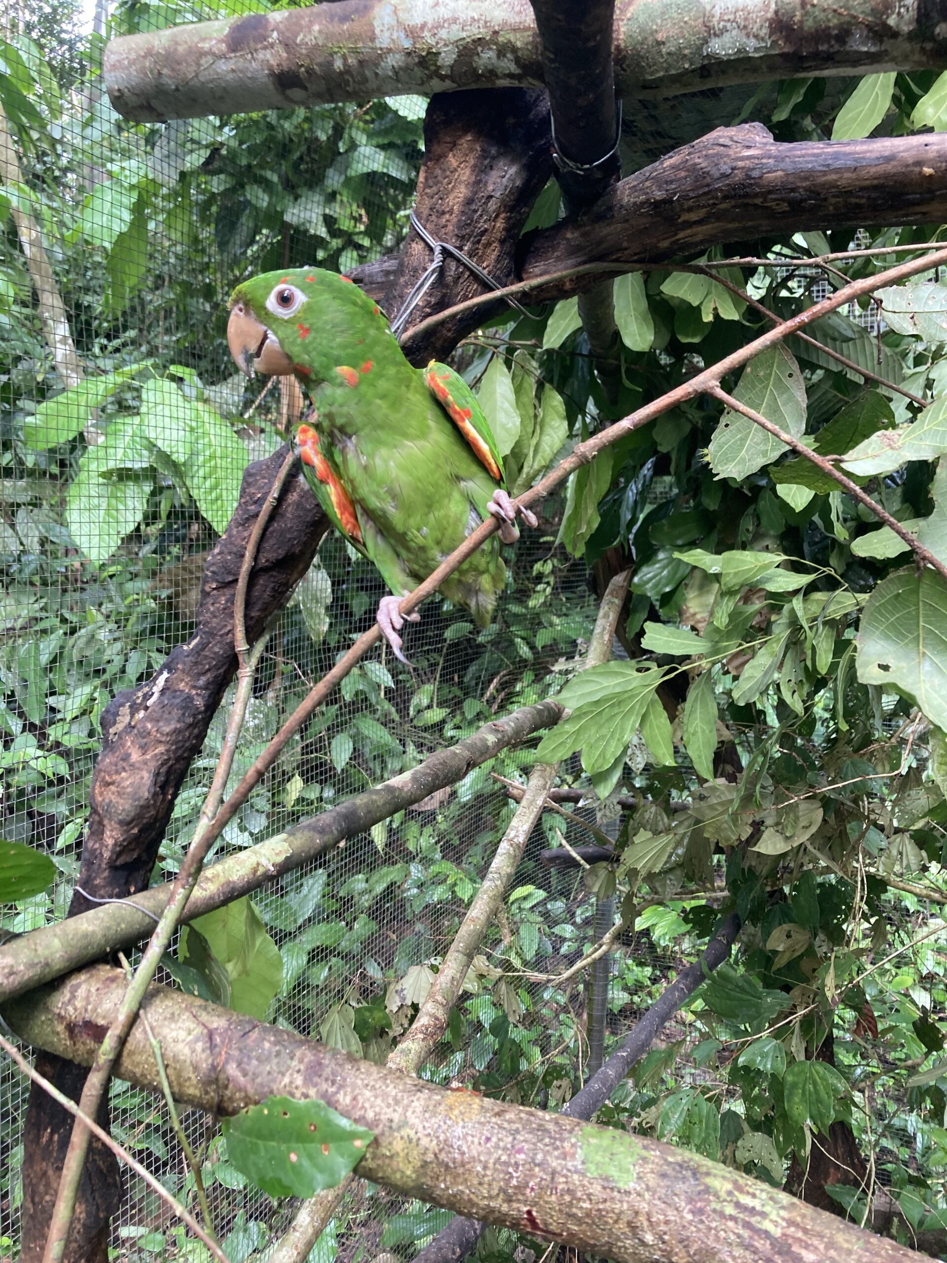 And as last newcomer we welcomed Don Pancho, a Mealy Amazon parrot, rescued from the illegal pet industry. Poor guy, he does not like humans, and oh so understandable! During examination we found a string still tightly wrapped around his claw, causing the loss of two of his toes. We sure will do our best to make him feel at home at Esperanza Verde some extra TLC!