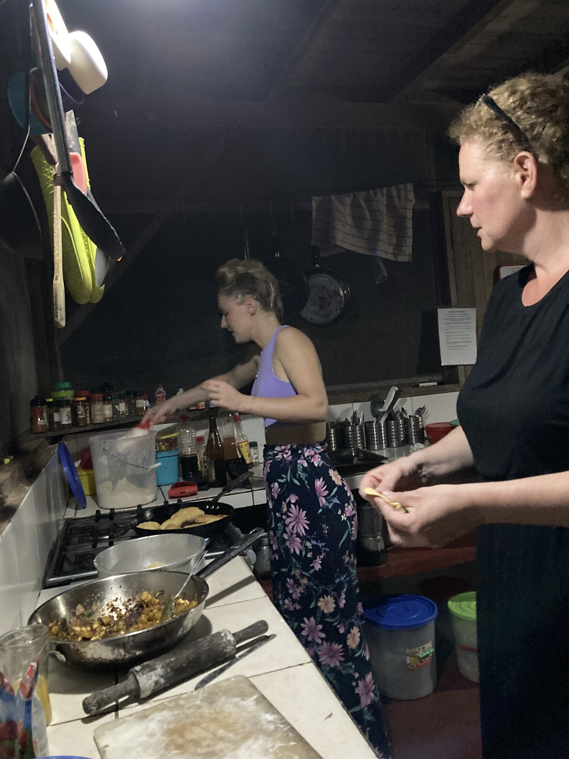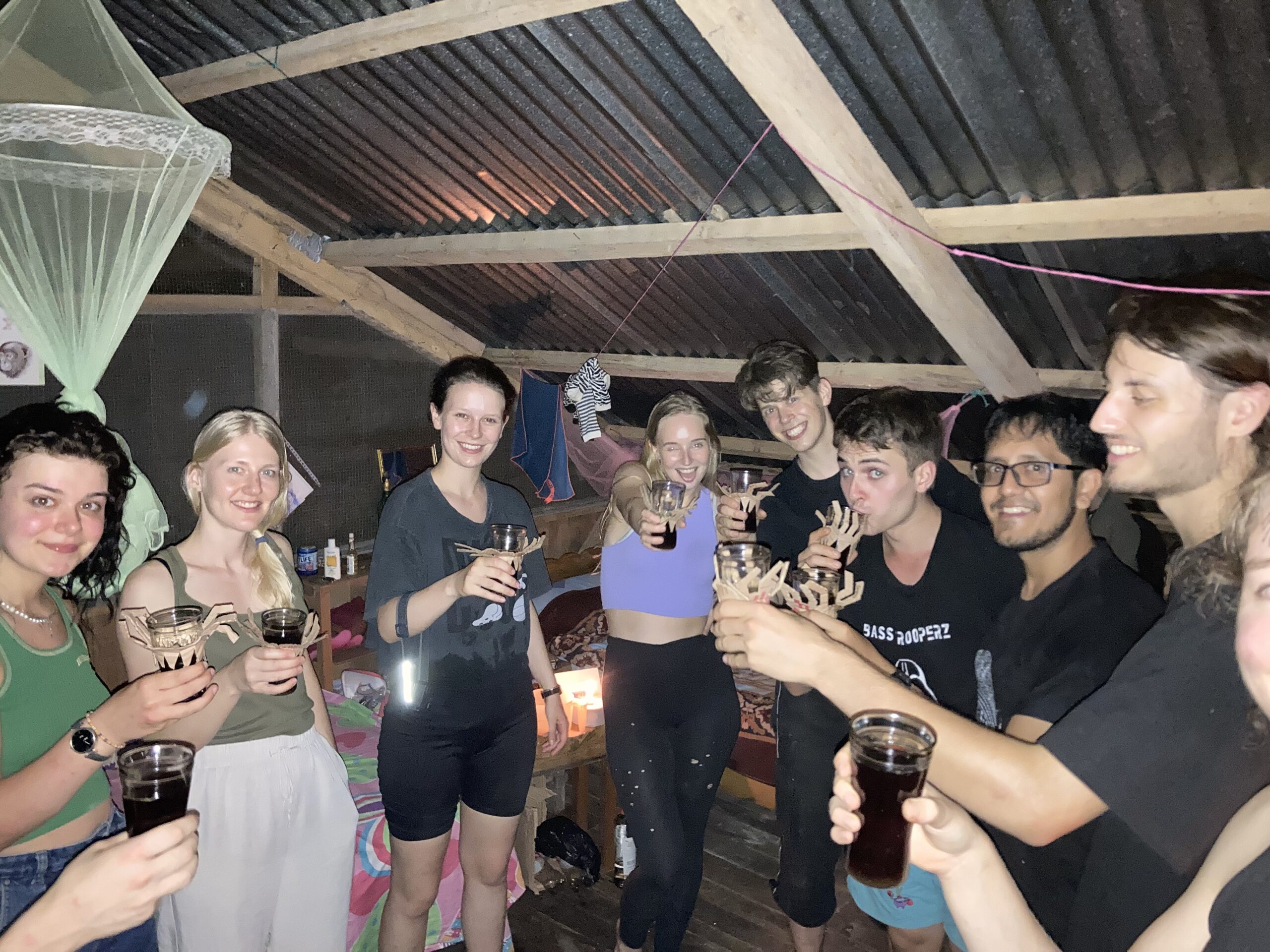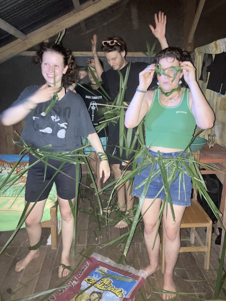 We hit the jackpot with extra volunteers this month! Not only did we welcome five new ones, but guess who else popped in? Sigrid, Olivia’s good friend. The volunteers couldn’t stop raving about her culinary wizardry, especially when we all gather for our Friday night communal cooking! She didn’t only bring bangin’ food, she packed a karaoke microphone which is frequently used during bonfire nights or our so-called ‘Black Pista’ shenanigans. Who knew this classic Dutch student tradition would conquer the jungle? With themed rooms containing creative cobwebs, luscious leafy creations, and games galore!