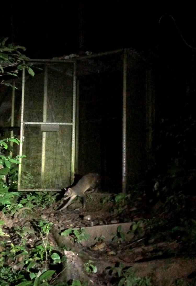 Payco (adult male crab-eating raccoon) has recovered well, albeit with less of a tail, see the last newsletter, he swiftly took his chance for freedom when we opened his enclosure door.