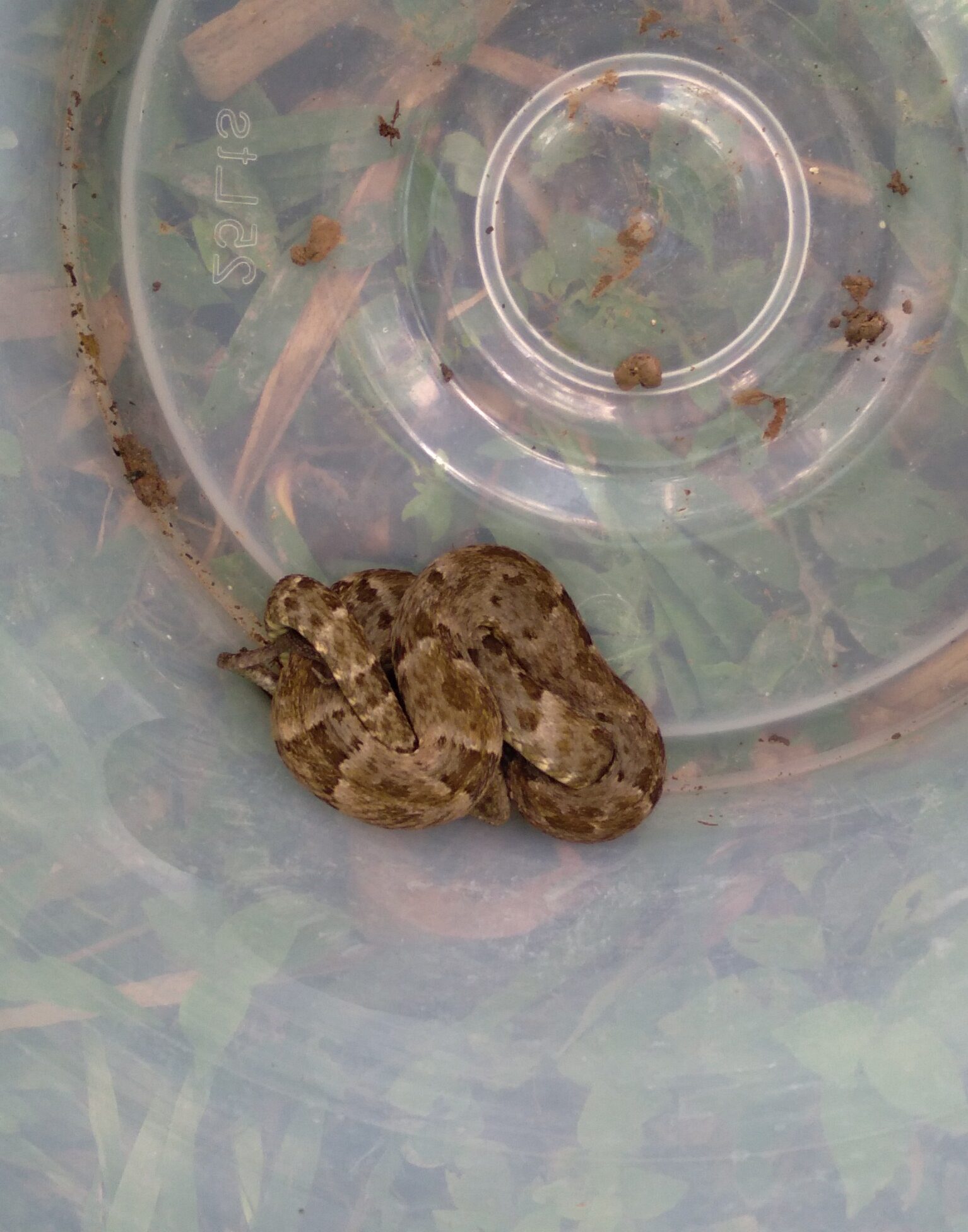 The puzzling and sad loss of three Amazon parrots Ulisho, Kit and Rhagear in the Pichu Aviary has been solved. As it happened at night, Douwe (male adult homo sapiens) decided to hang up his hammock to take the first shift of the stake out. It didn’t take long until the perpetrator showed up. A young fer-de-lance (a very venomous snake) was luring under one of the feeding tables. Because juvenile fer-de-lances haven’t learned how to control their venom, it wasn’t big enough to eat the birds, but sadly venomous enough to kill. Douwe caught it, and after all the volunteers got a good look (so they know what to watch out for), he relocated it far-far away from Esperanza Verde.