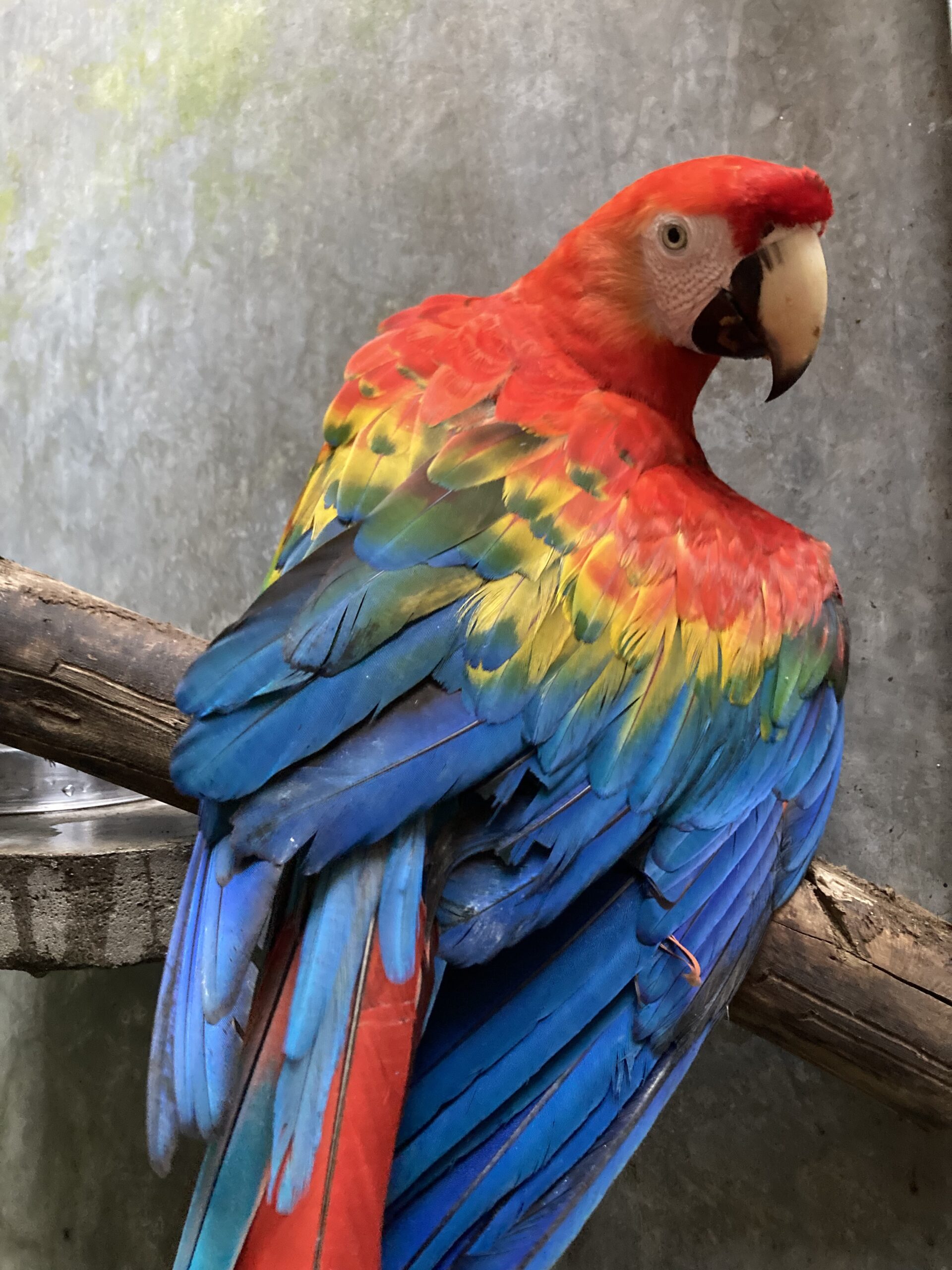 A huge swelling was found under Wanda’s (scarlet macaw) wing. We now know why! She’s the only survivor of a fer-de-lance bite. With careful care we hope that she will get full use of her wing again, until then, we’ll just have to play the waiting game.