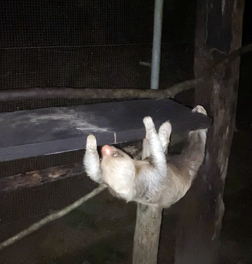We love that many of you have asked for news about Kelso (young male two-toed sloth) and Kasmir (young male tamandua) and you’ll be pleased to hear that they’re doing exceptionally well. Kelso and Tom (male homo sapiens intern) have been developing quite the “bromance”. Kelso seems to only let Tom take him to the plantation for his outside trips – very cute. Tom and Douwe have prepared a lovely outside enclosure for Kelso, and he seems to be loving it. At the rate he’s learning to climb, he’ll likely have moved out of the family house by the time Olivia returns from the Netherlands!