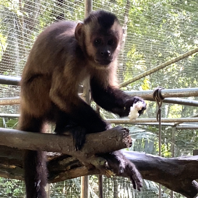 Valentino (large-headed capuchin male) joined Yanamayo, Selda, Fasso and Choco (see the last newsletter) in the Loki enclosure. The introduction went well, Valentino thoroughly explored every nook and cranny – while keeping a cautious distance. He joins the younger Fasso and Choco for food, which is excellent as we plan to release the three of them soon.