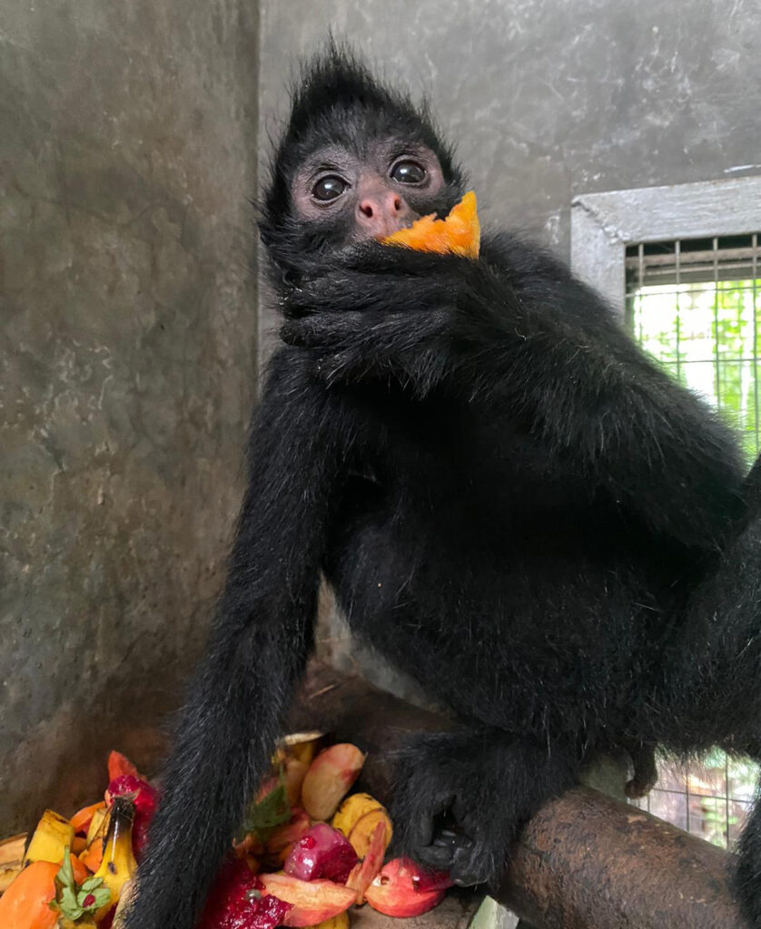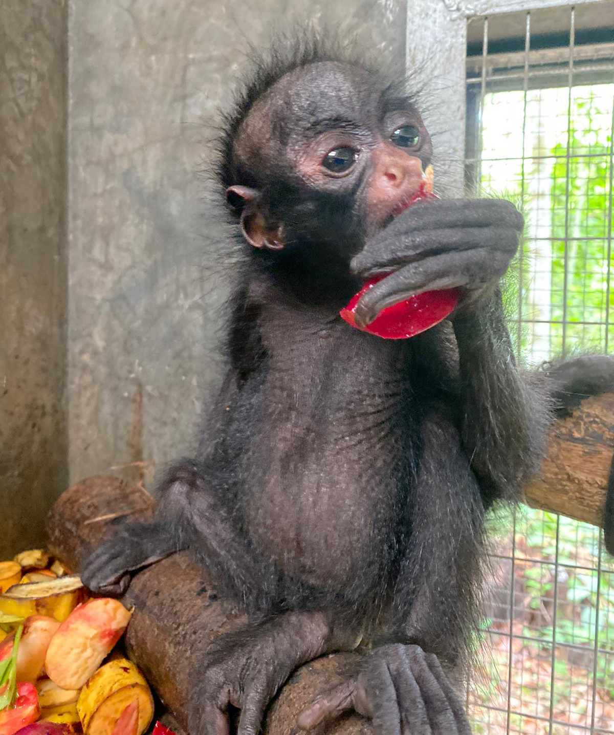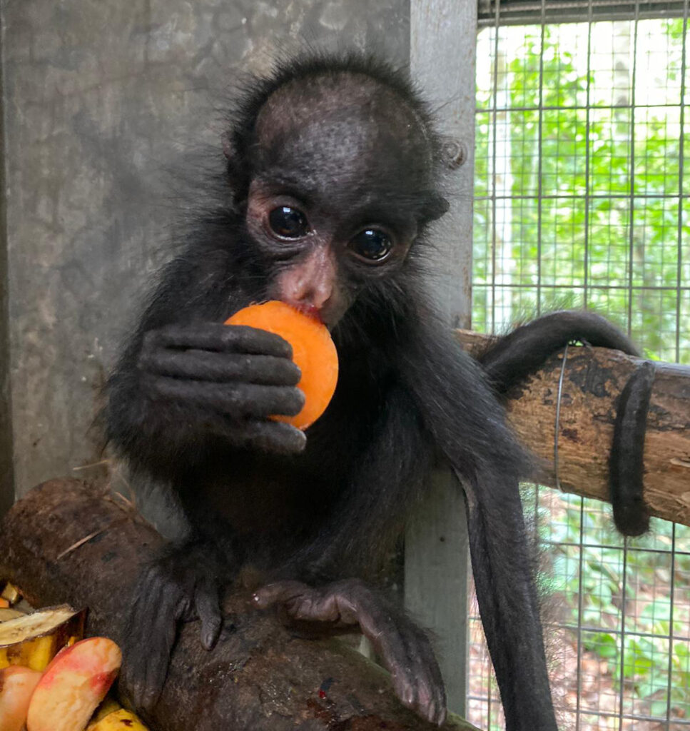If you keep follow our newsletter, you might remember Naka (adult female woolly monkey) sadly had a miscarriage. This month, we observed Morena (adult female woolly monkey) displaying similar behaviours – not eating and irregular breathing. Unfortunately, Morena also ended up having a miscarriage. Unlike Naka, who has fully recovered and is back out with the other monkeys, Morena passed away. It’s always sad when we lose an animal, but Morena’s death took an extra toll on us. She was a true fighter. Life did not give her an easy ride and just as she seemed to catch a break, finding a good rhythm and a family with the other woolly monkeys here, her time was up. She serves as a beautiful and inspiring example to us all, that no matter how long an animal has been a pet, with determination and dedication, we can successfully reintroduce wild animals to the life they’re meant to lead.