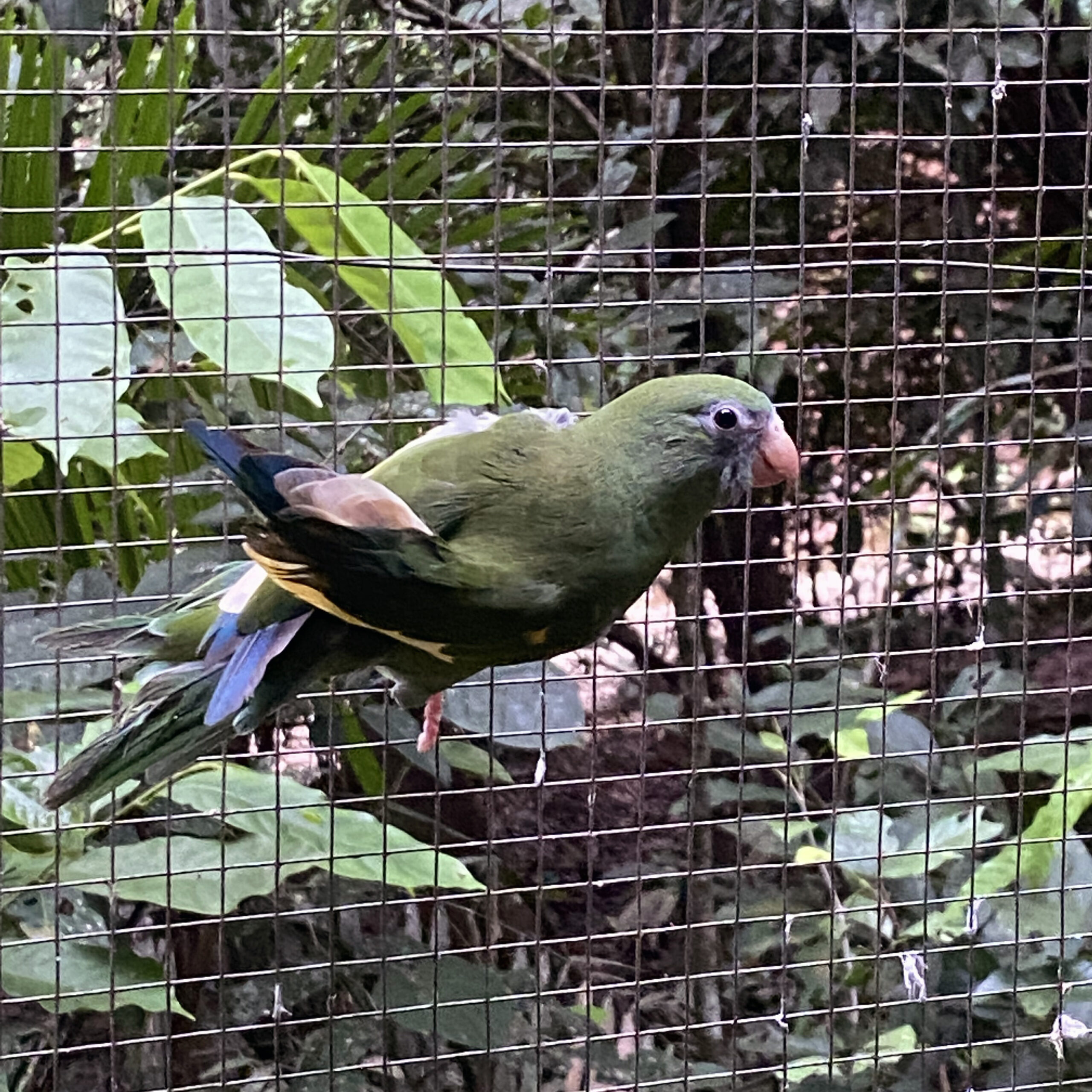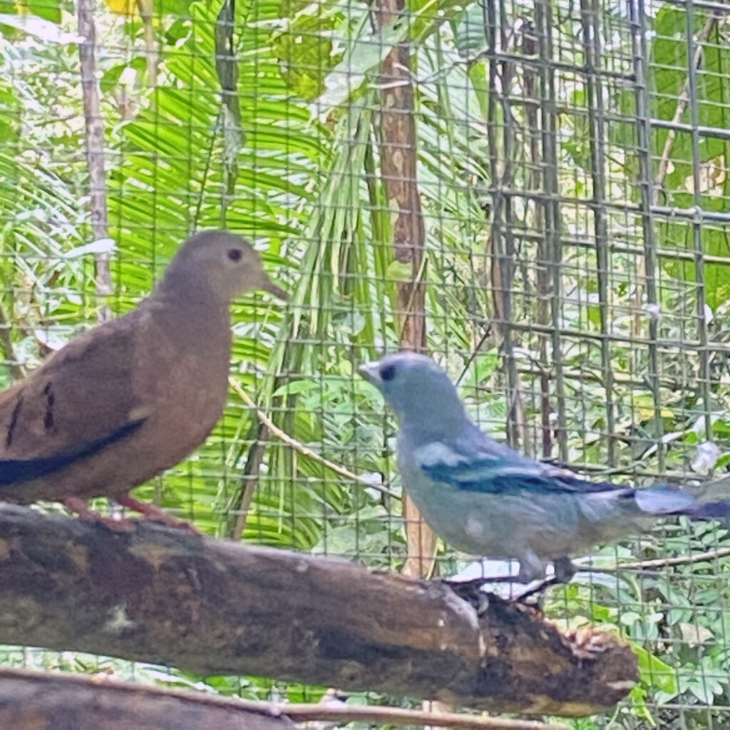 Given the number of aviary residents, the Susy Utzinger Orphan Animal Hospital might be mistaken for a bird clinic. Electra (white-winged parakeet) spent a short stint in the clinic with a bad foot. She quickly recovered and returned to the Igor enclosure. We took the opportunity to bring Esco (blue and grey tanager) also to Igor at the same time, as going together with a friendly face is always comforting. He had a bit of bad luck as the first night brought some heavy jungle rain. However, our quick-thinking volunteers woke up and came to his rescue by building a small shelter for the night. He seems to fit in and get along with all his aviary amigos.