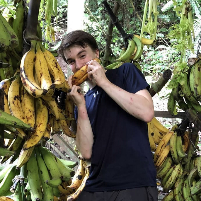 Zak is 19 years old and comes from England. Even though he really missed his Guinness and gravy from home, he decided to stay at EV during the Corona pandemic. When we asked him why, he said: “I would be in lockdown without being able to see anyone or do anything. I don’t understand why I would want to be there if I could be in a place with monkeys playing on my roof every morning. It’s such an amazing environment to be in!”
