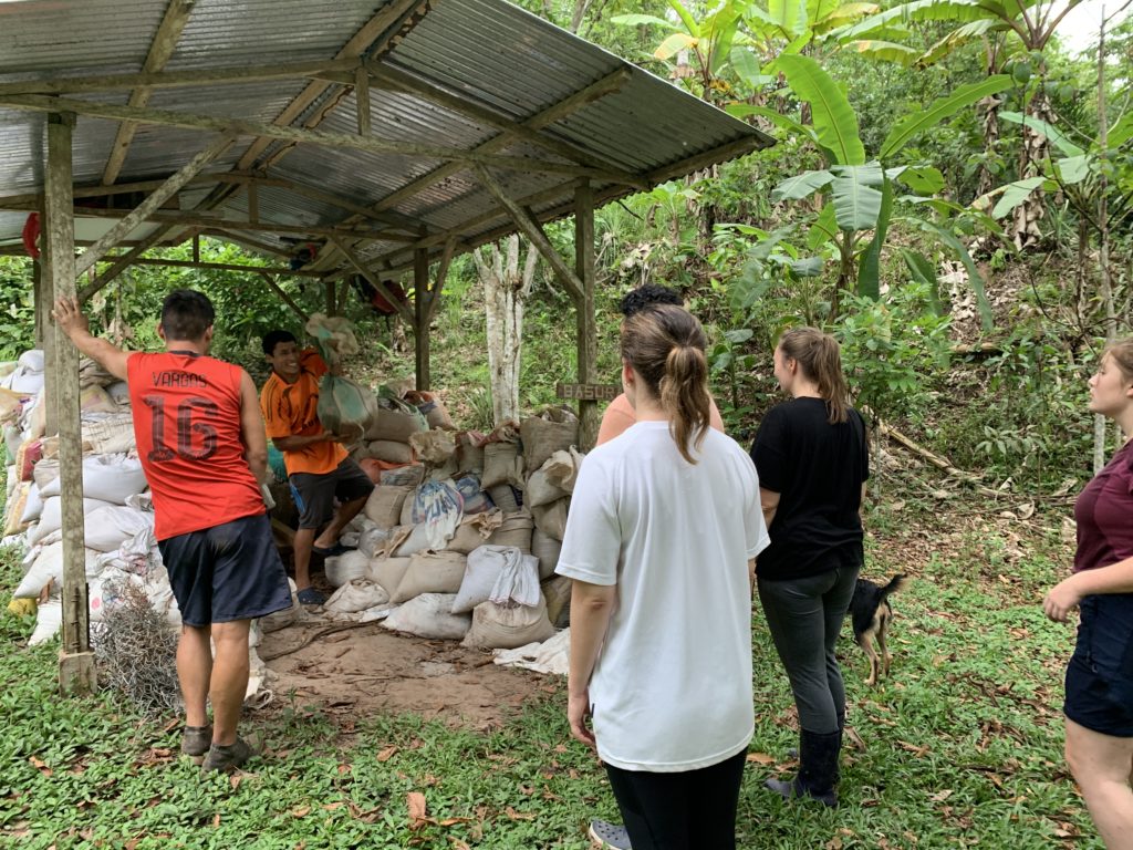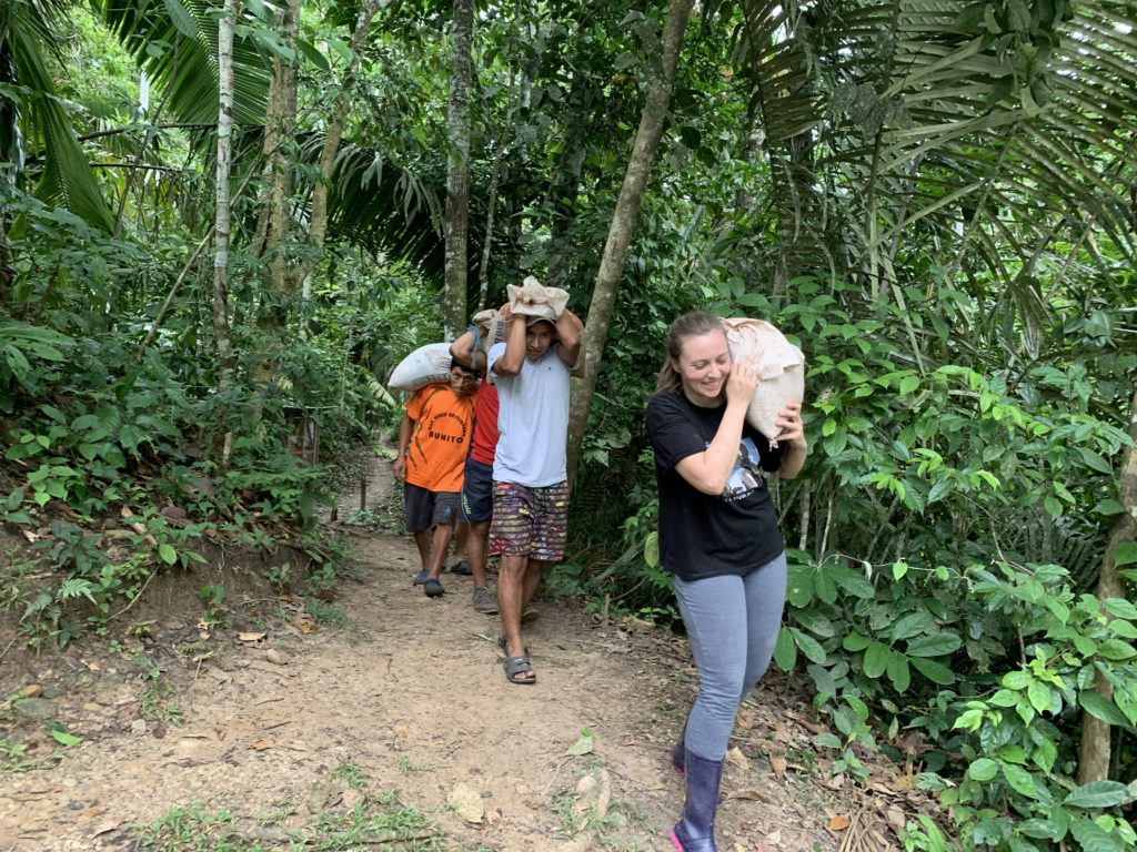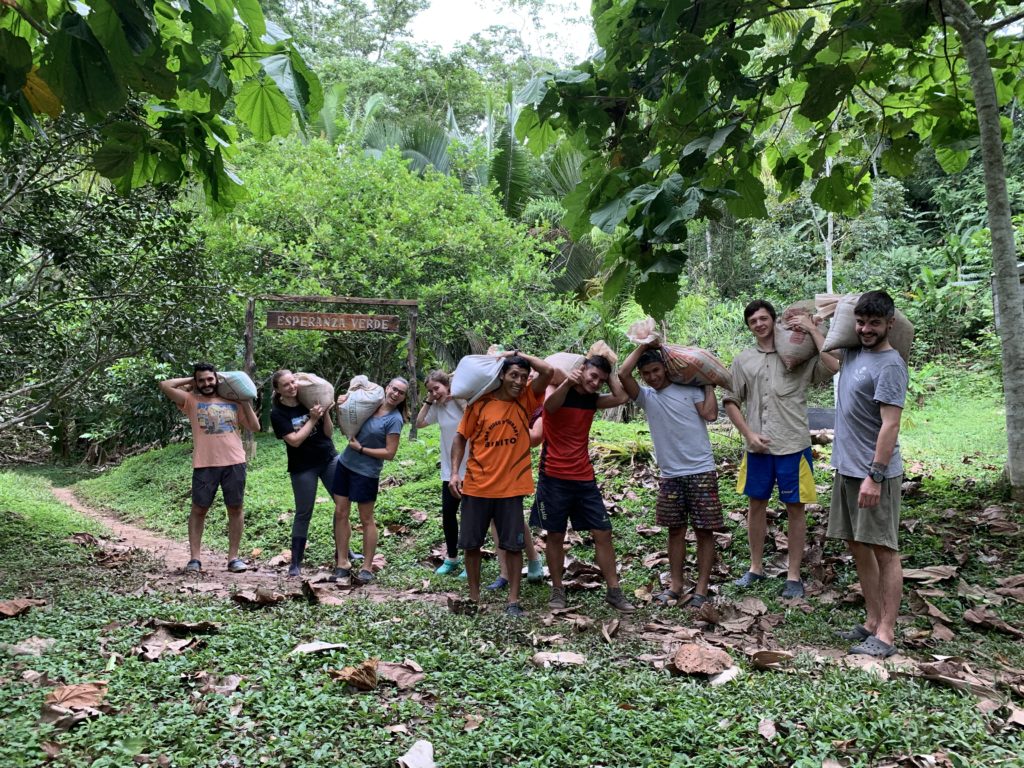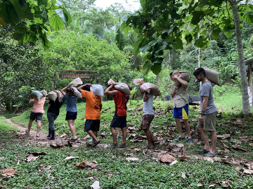 As the rainy season approaches, the river will get higher, and beaches will be scarcer. Therefore, a lot of labour in these lasts months has been focused on getting sand for concrete for any foundations that could become necessary for any constructions in the coming months. It means hard manual labour; going by boat to a nearby beach, collecting sand by shovelling it in bags of roughly 25kg in weight, carrying and transporting by boat, and then carrying them all to the centre of Esperanza Verde.