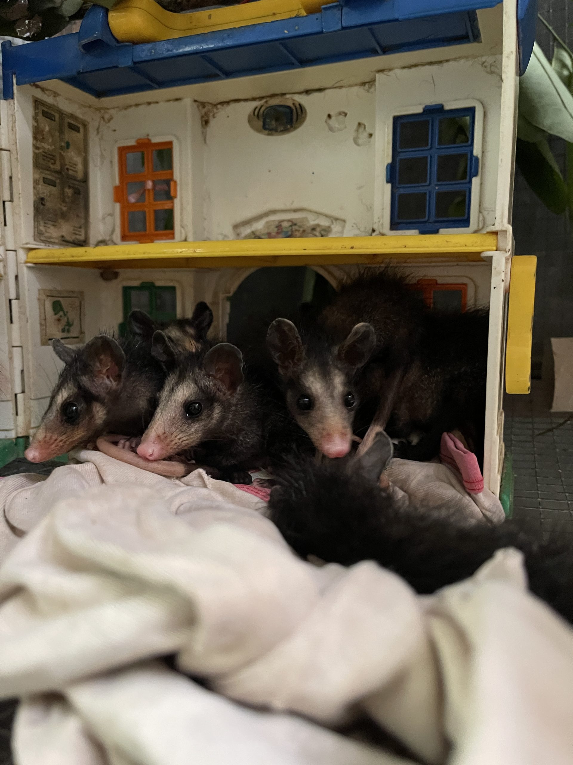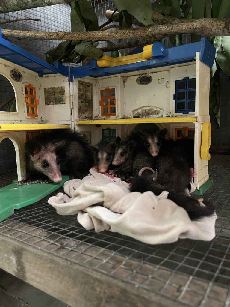 - 7 very young opossums and 1 juvenile opossum.