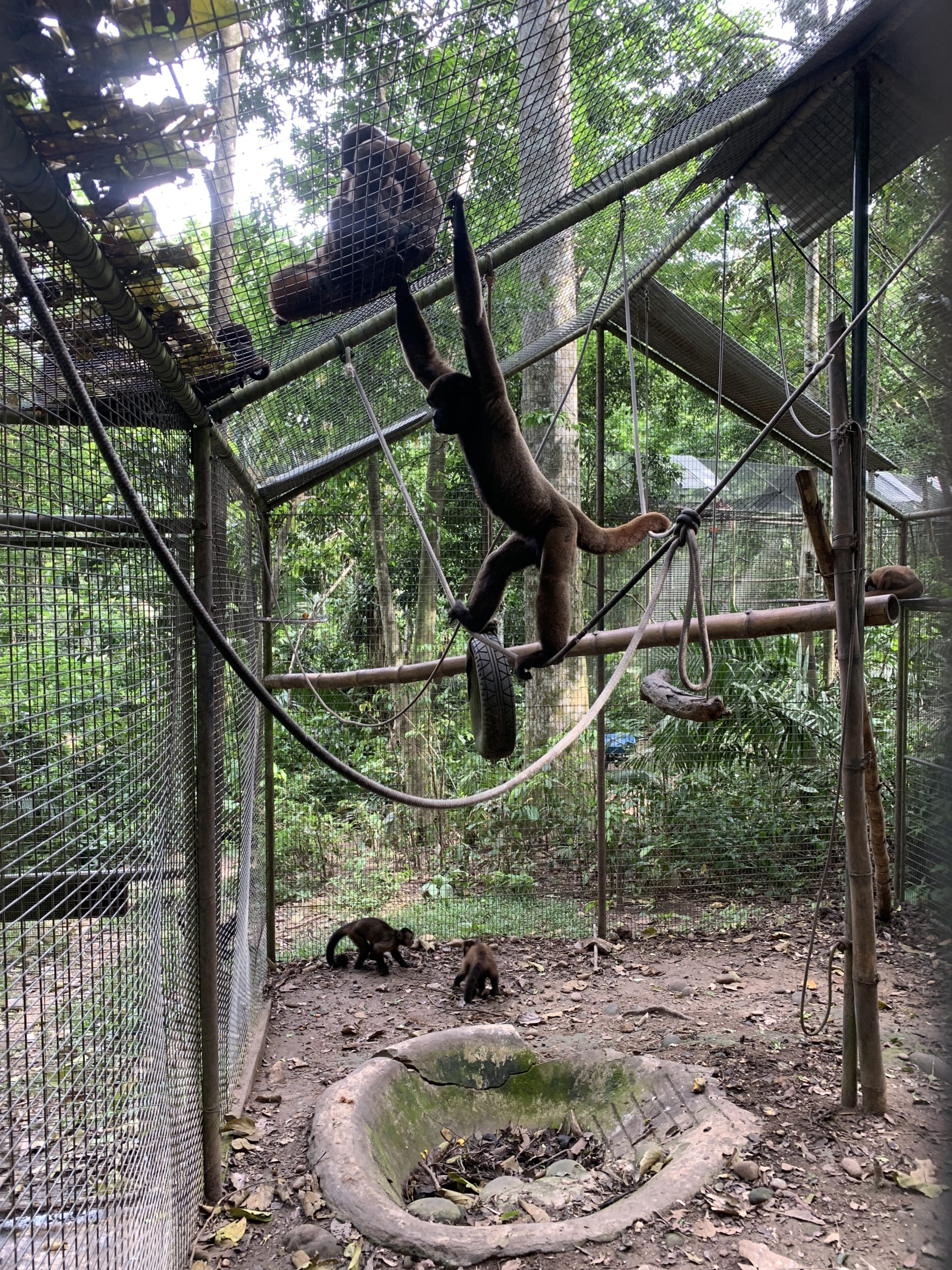 The time had come for Moyo (adult male Humboldt’s woolly monkey) to make the shift from Lulu to the more spacious La Sapa enclosure joining Kamayo, the adult male woolly monkey, and two large headed capuchin monkeys, Yanamayo and Selda.