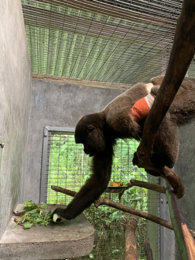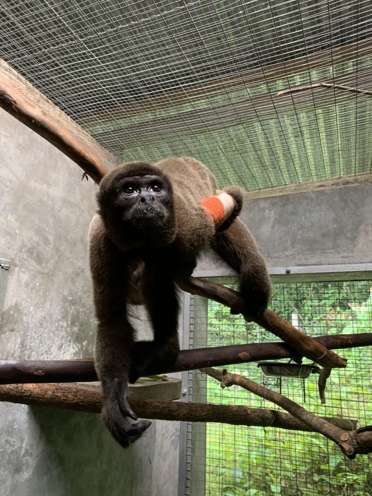 Panchin the woolly monkey with a broken leg in SUSTAOH