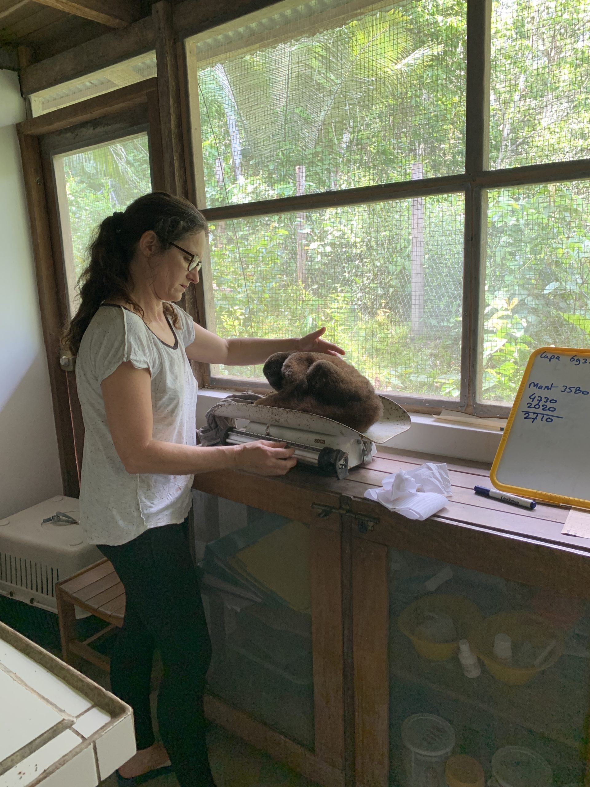 Lupa, an adult female Humboldts woolly monkey, who suffered from a miscarriage, was released after her appetite had returned and she appeared to be progressing well. Then after only a week she was reintroduced to the SUSTOAH because of her lethargy and changes in habits/personality. Now we are able to monitor her condition more closely and ascertain if she has indeed something physically wrong with her or if there is some other factor contributing.